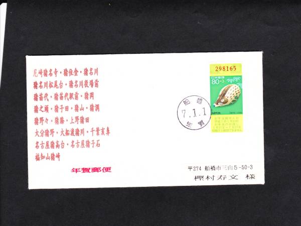 記念カバー 1995年 年賀横並び 7.1.1. 実逓