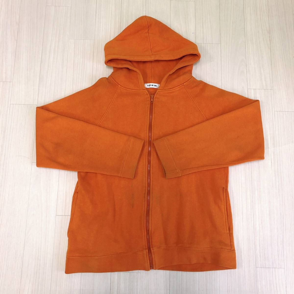 Y0238 CLEF DE SOL クレドソル レディース トップス ジップパーカー 長袖 裏起毛 Mサイズ オレンジ 橙 無地 綿 カジュアル おしゃれ 秋冬