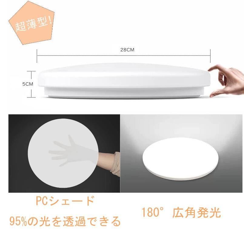 LEDシーリングライト 8畳 薄型 28w 無段階連続調光調色 3200lm 昼光色 電球色 リモコン付き 電源AC