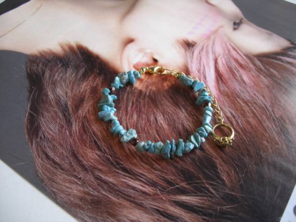 ニューヨーク・テイスト・・シリーズです♪春色・レシピ・・シックなブルーグリーンのターコイズのブレスレットです♪さざれのターコイズにチェコビーズを合わせてキュートな表情です♪6ミリから9ミリ位のさざれのターコイズはチェコビーズを合わせてシンプルでスタイリッシュな表情です♪長さは16センチ+アジャスター6センチで最長22センチ位です♪お揃いのブレスレットやネックレスやピアスも出品しています♪シンプルで長く着けていただけるデザインを考えて作りました♪ハンドメイドをご理解頂いてノークレーム、ノーリターンでお願いします