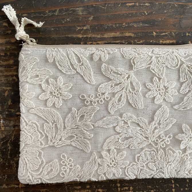 | 素材 | 生地:ポリエステル80%、麻20%/チュールレース:ポリエステル100%/刺繍糸:綿100% |