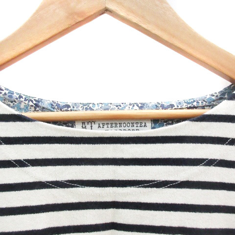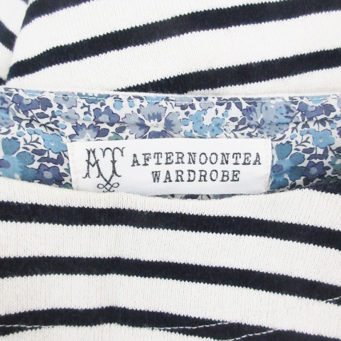 アフタヌーンティー Afternoon Tea WARDROBE カットソー 七分袖 ラウンドネック ボーダー柄 38 オフホワイト 白 /YM25 レディース