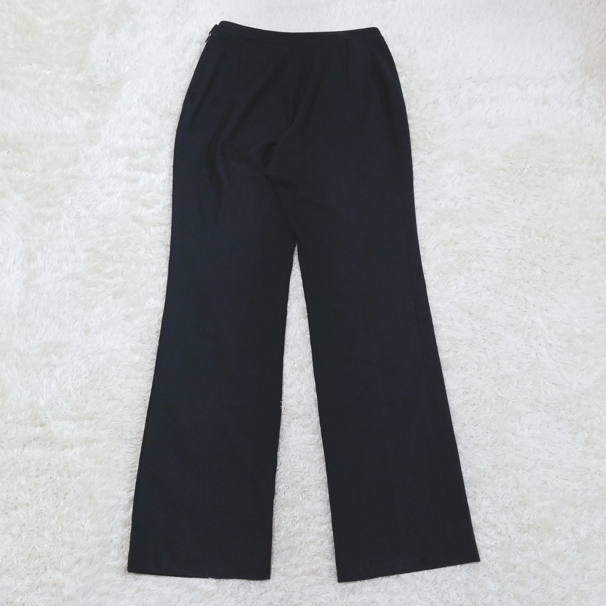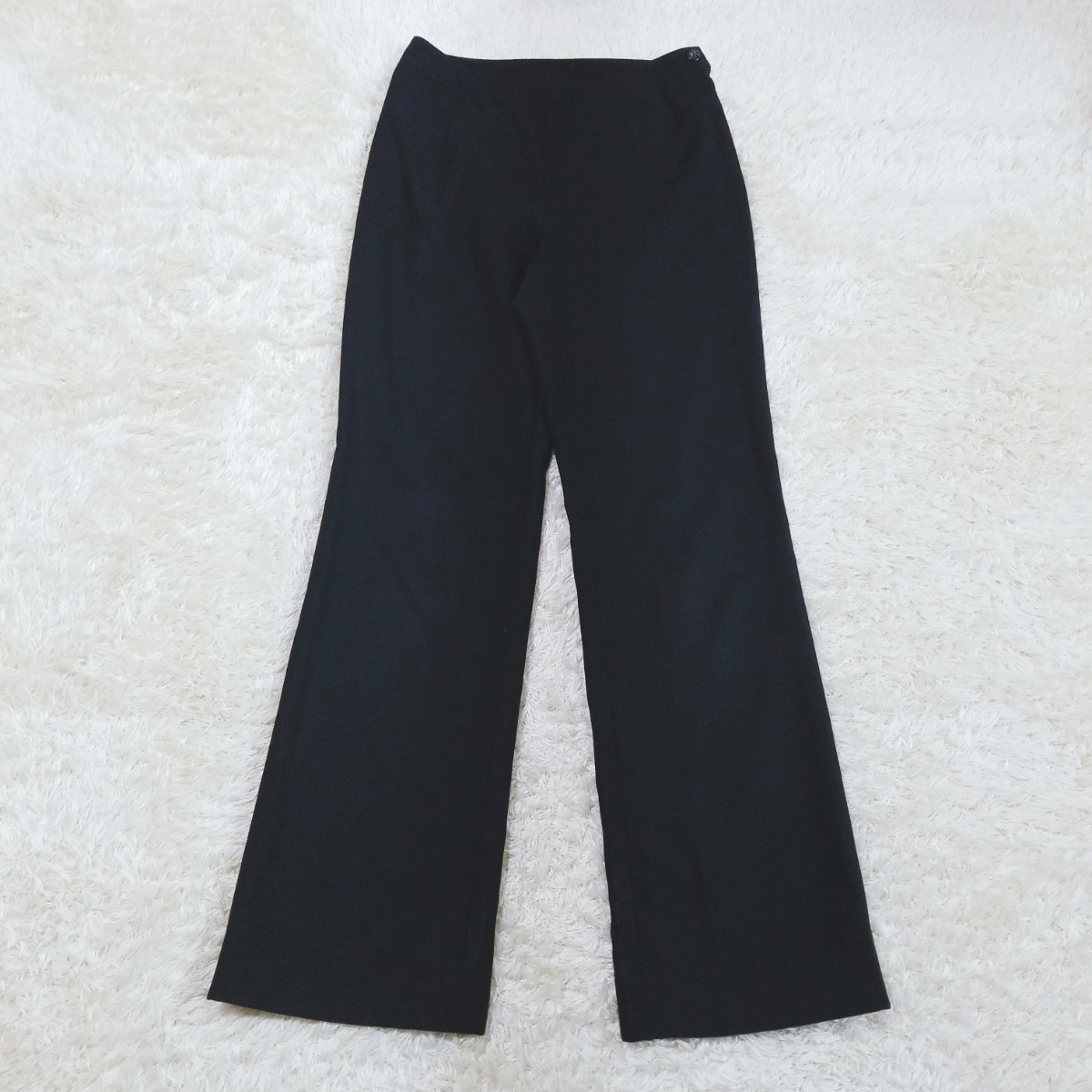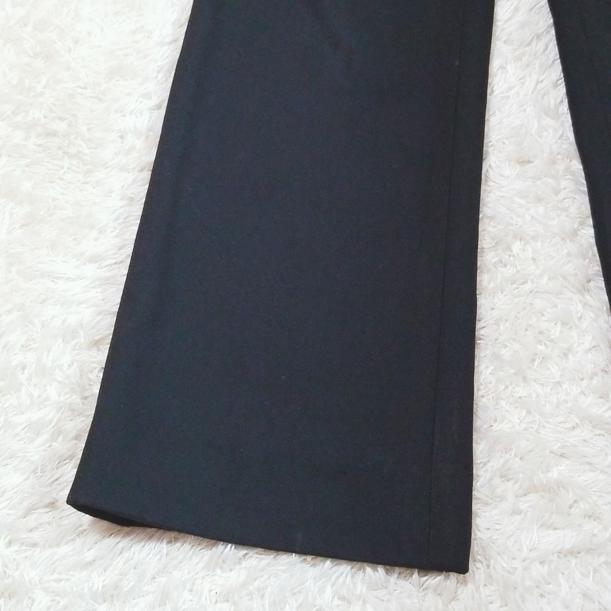 Y1099 タックフレアパンツ ボトムス サイドジップ ストレッチ レディース M相当 黒 ブラック タグなし