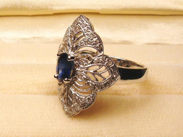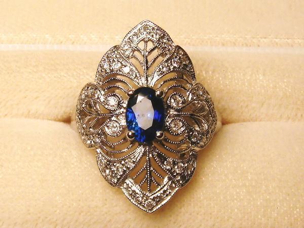 きれいな輝きのダークブルーサファイアが素晴らしいリングアクセント♪