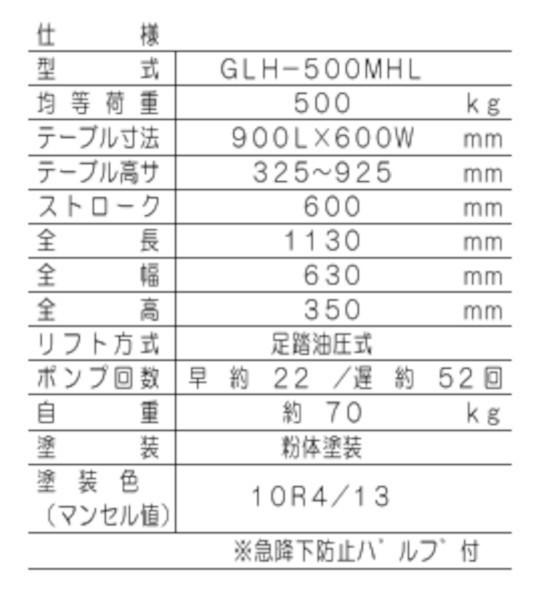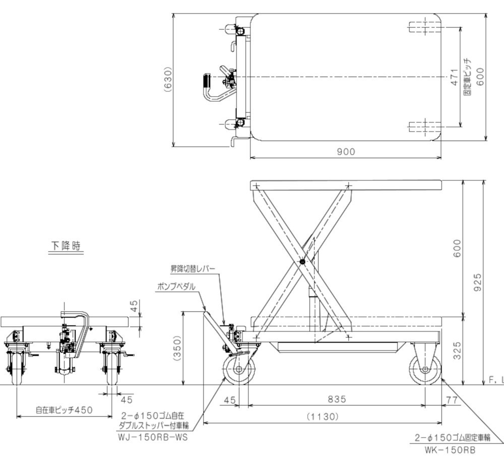 操作は基本的には足踏みでポンプを介して油圧シリンダーを作動させ、テーブルを上昇させます。