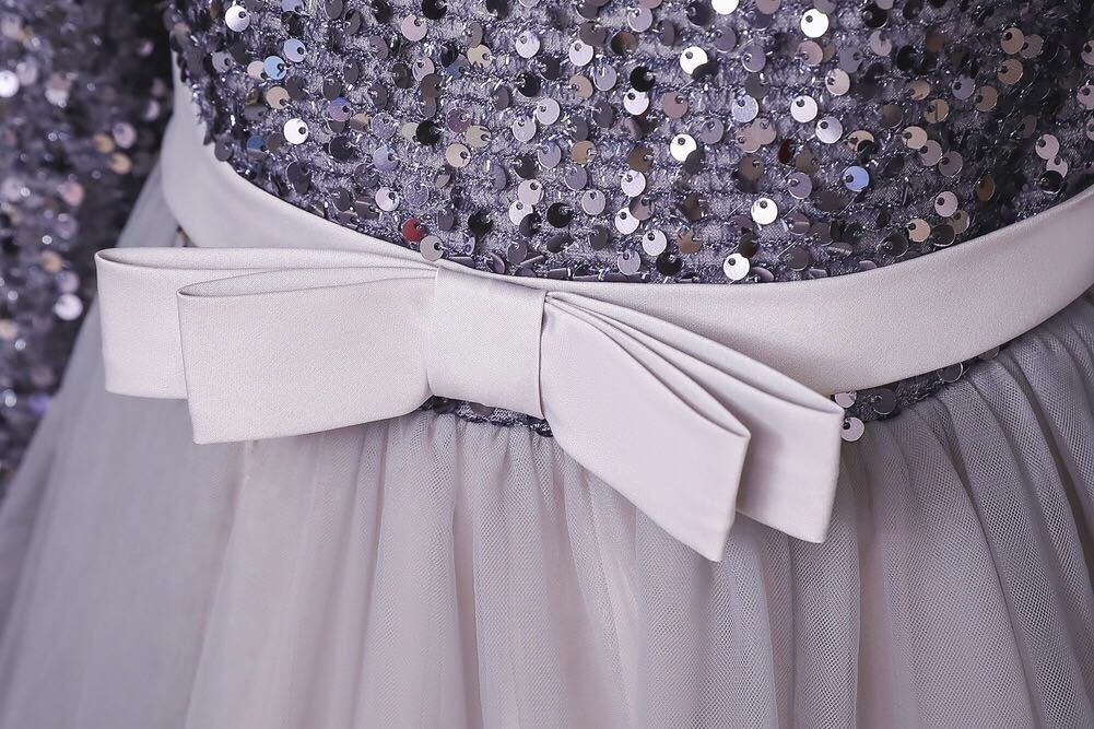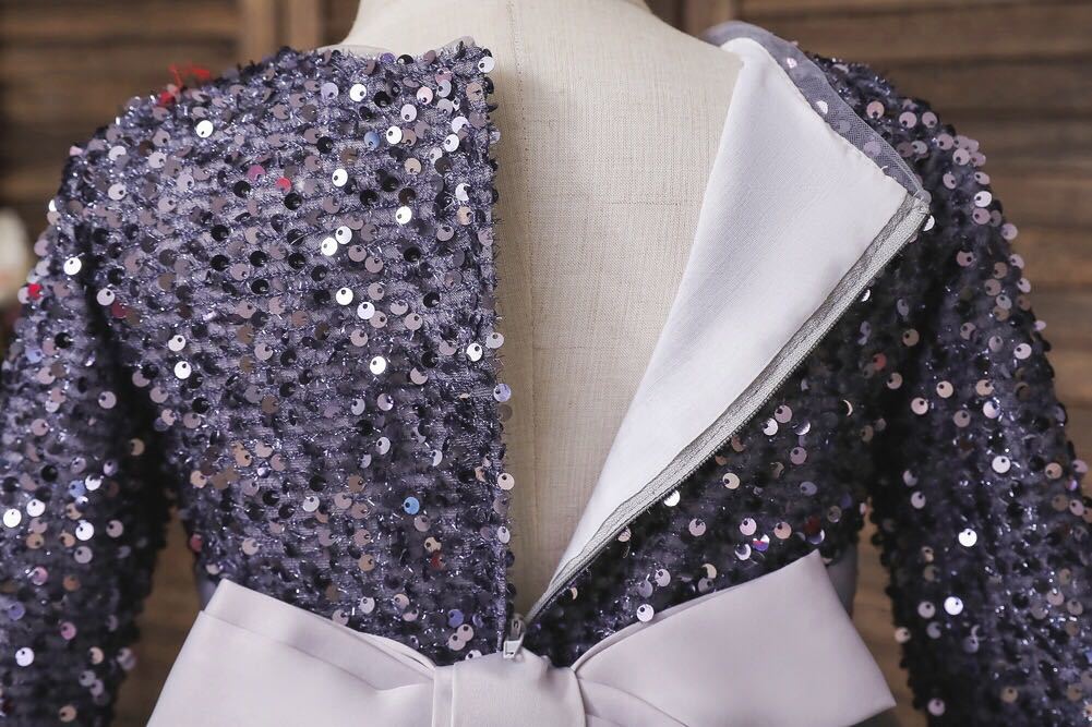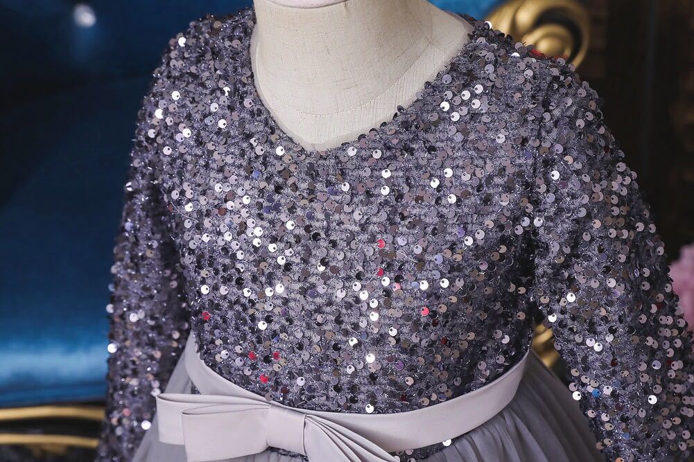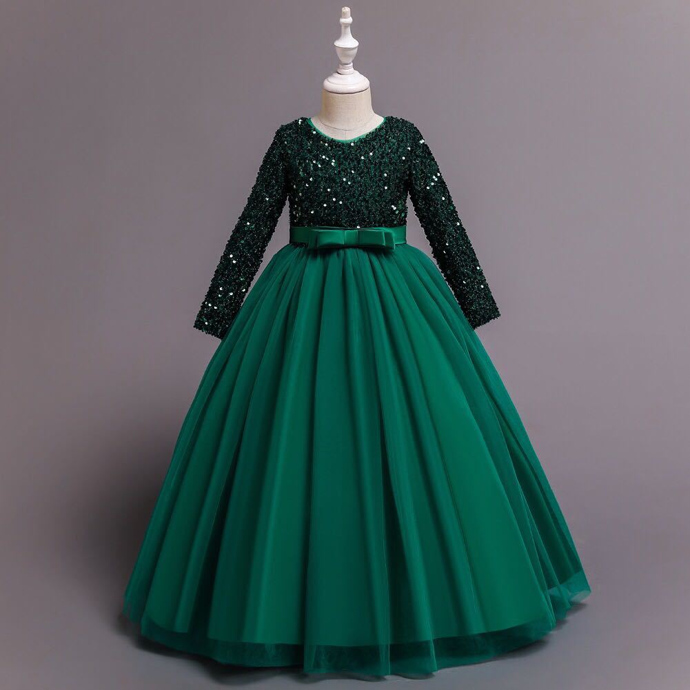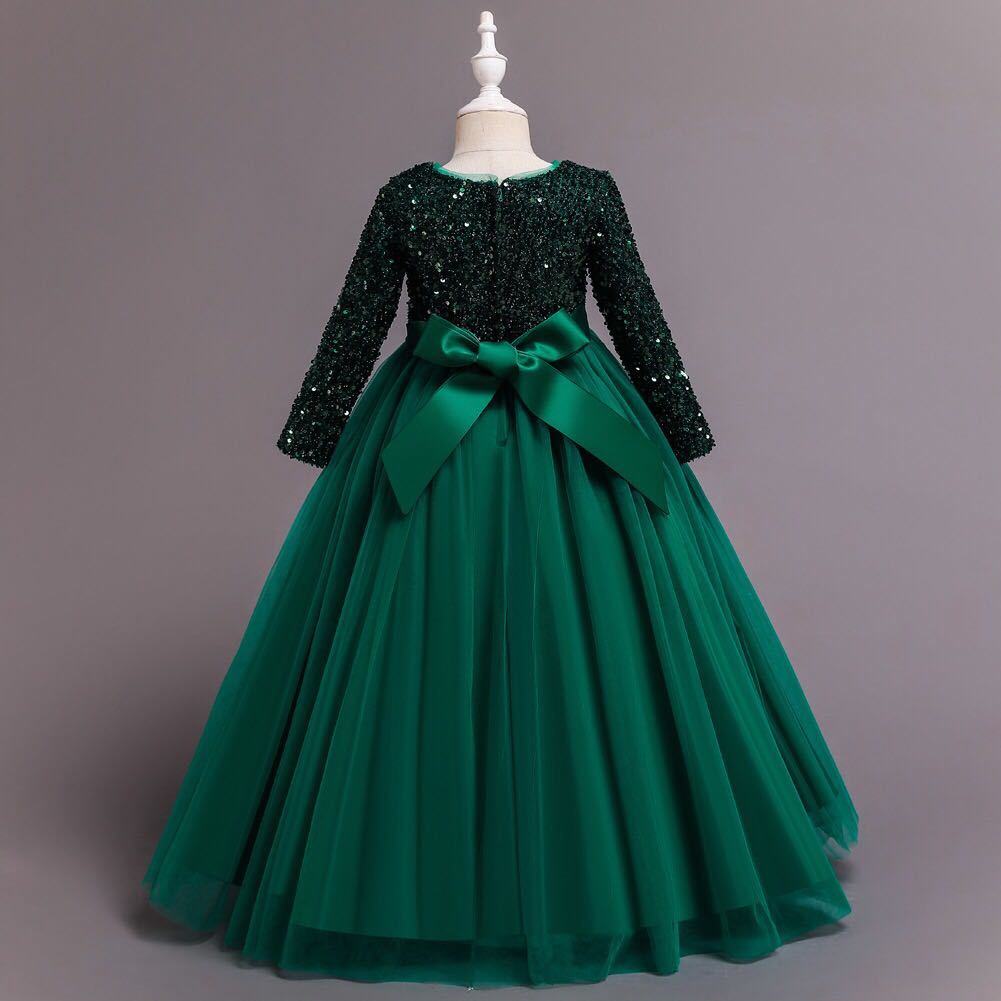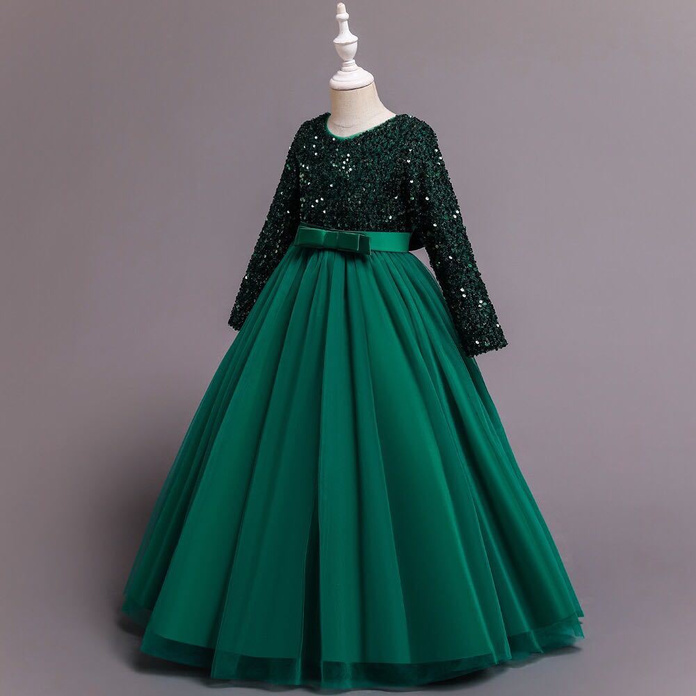 今年大流行色グリーンキラキラ長袖キッズフォーマルドレスです。