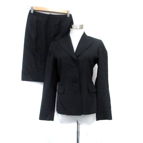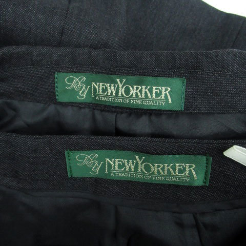 ニューヨーカー スーツ セットアップ テーラードジャケット シングル 総裏地 フレアスカート ウール 7AR チャコールグレー レディース