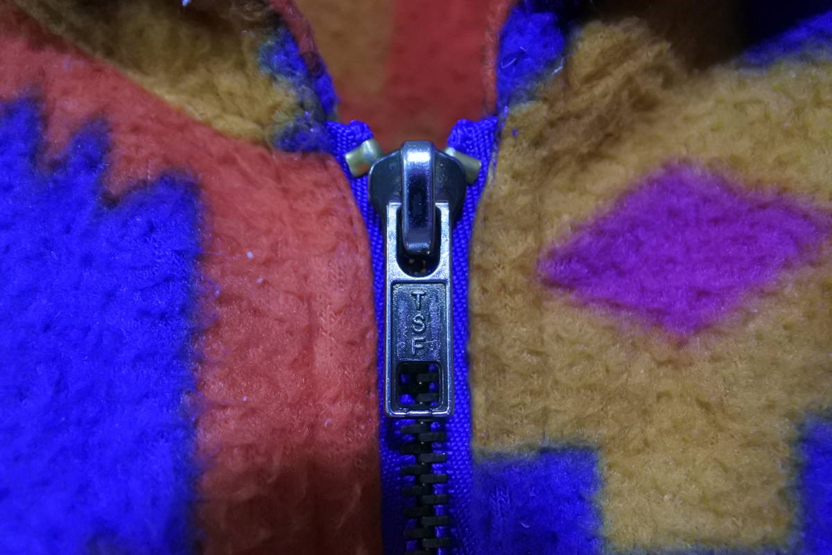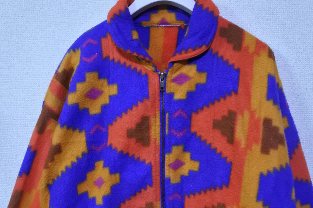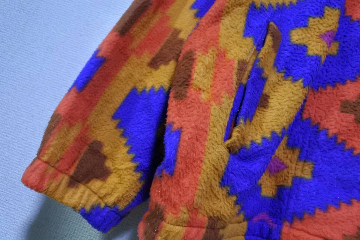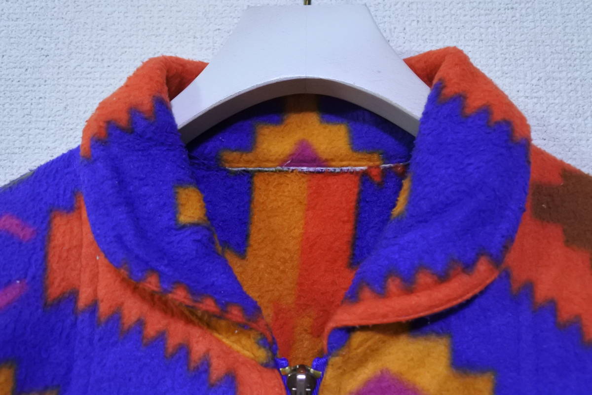 タグ欠損・クロシェ編み柄・生産国不明・全体的にフリース潰れ・毛玉・使用感有り・状態は悪いですが着れます。