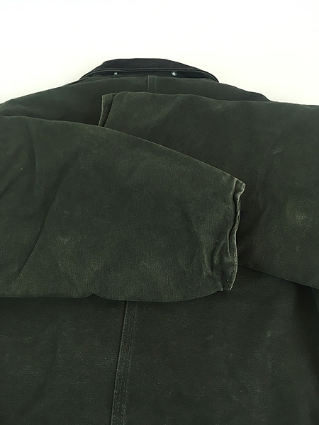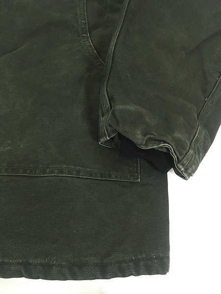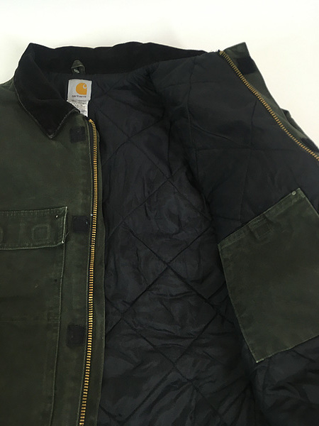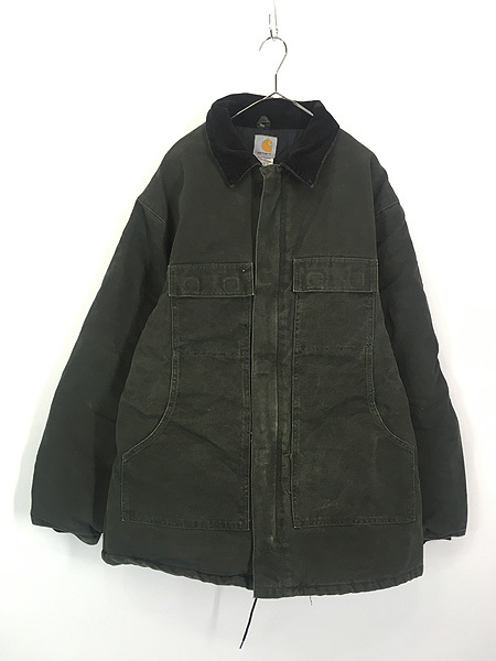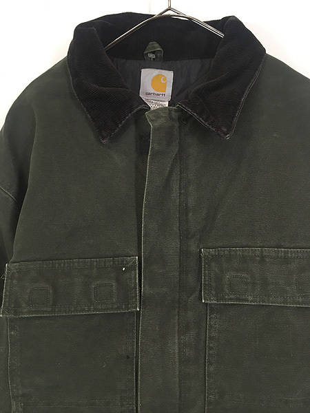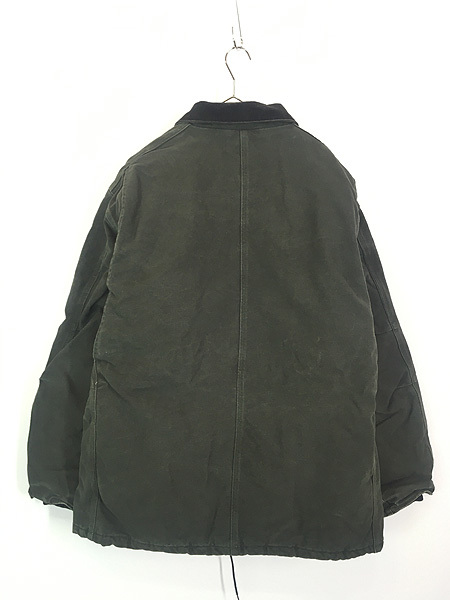 襟コーデュロイ、フロントはジップとベルクロの二重構造、ウエスト内側にドローコード、裏地は中綿入り黒のナイロンキルティング、袖内側リブ付きで防寒性も期待できます。