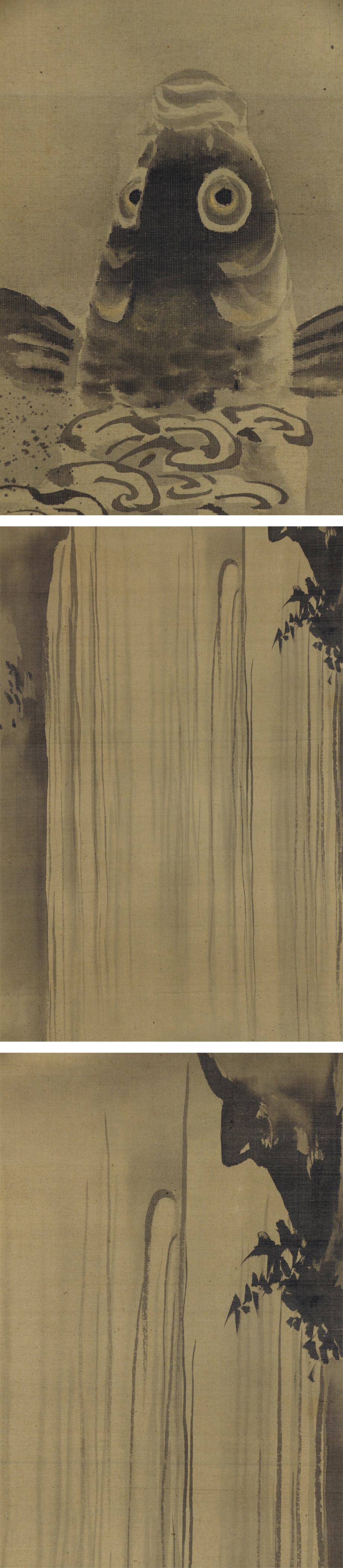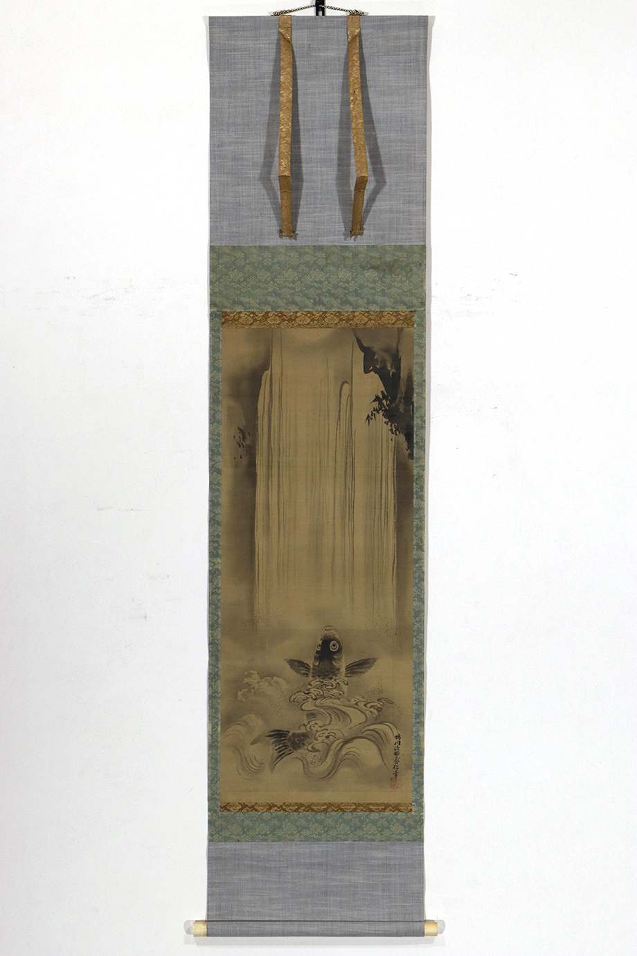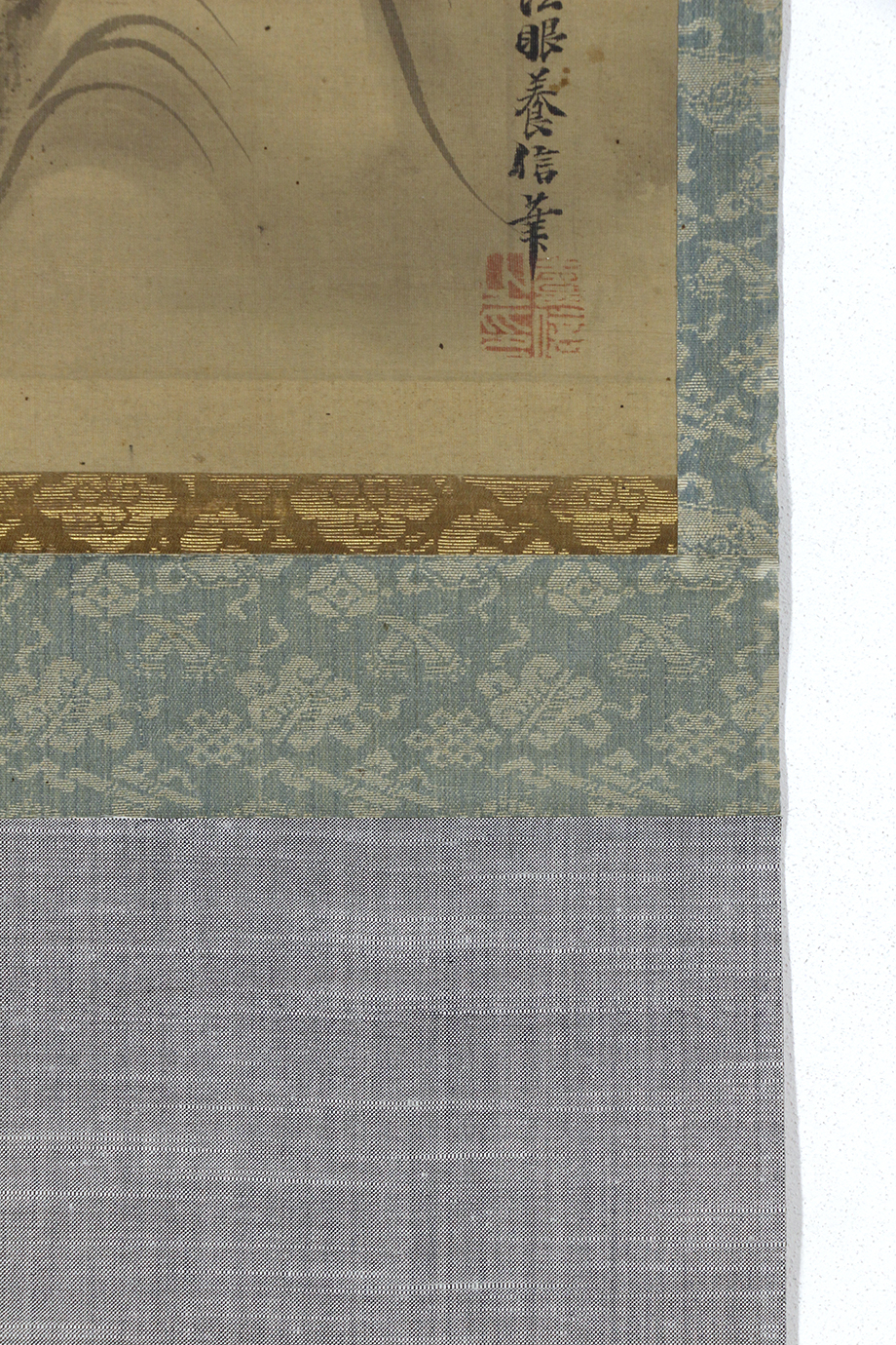 総丈サイズ…横 36 × 縦 153.5 cm 絹本水墨金泥・箱入 【印刷ではありません】 【真作】 狩野晴川院 江戸後期の狩野派の絵師。江戸生。名は養信。通称は庄三郎。会心斎、玉川、晴川院と号す。狩野伊川院栄信の長男。木挽町狩野家九代。江戸幕府奥絵師。画法を父に学び、古絵巻類の模写などを通じて古典的なやまと絵の研鑽を積んだ。文政2年(1819)に法眼、天保5年(1834)法印に叙せられる。江戸城西の丸御殿、ついで本丸御殿の障壁画再建の総指揮を執り、その記録は自身の『公用日記』に詳しい。子に狩野雅信。門下に狩野芳崖、橋本雅邦ら。弘化3年(1846)歿、51歳。 |