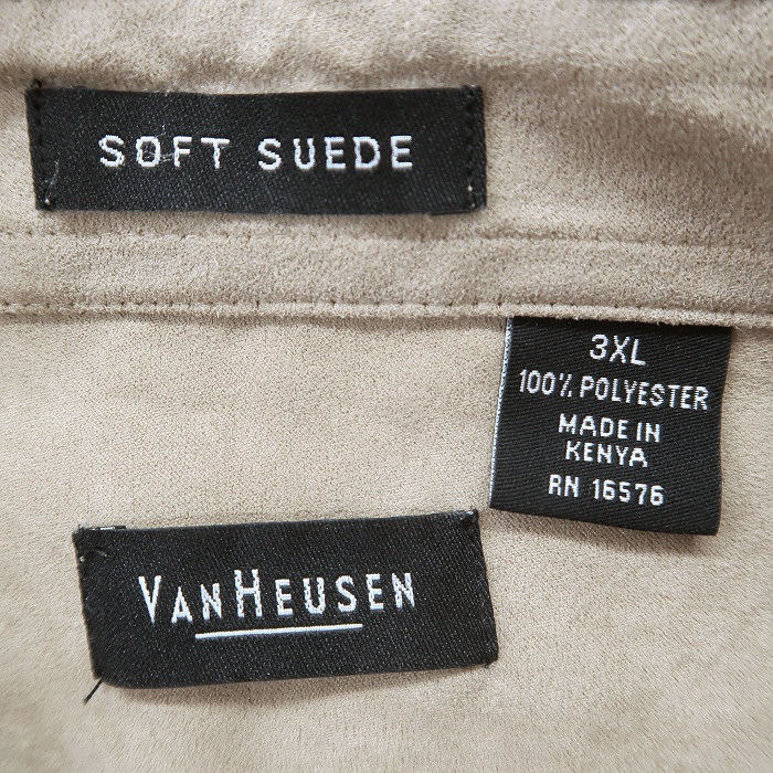 古着 VANHEUSEN フェイクスウェードシャツ 長袖 ライトブラウン サイズ表記:3XL gd68912