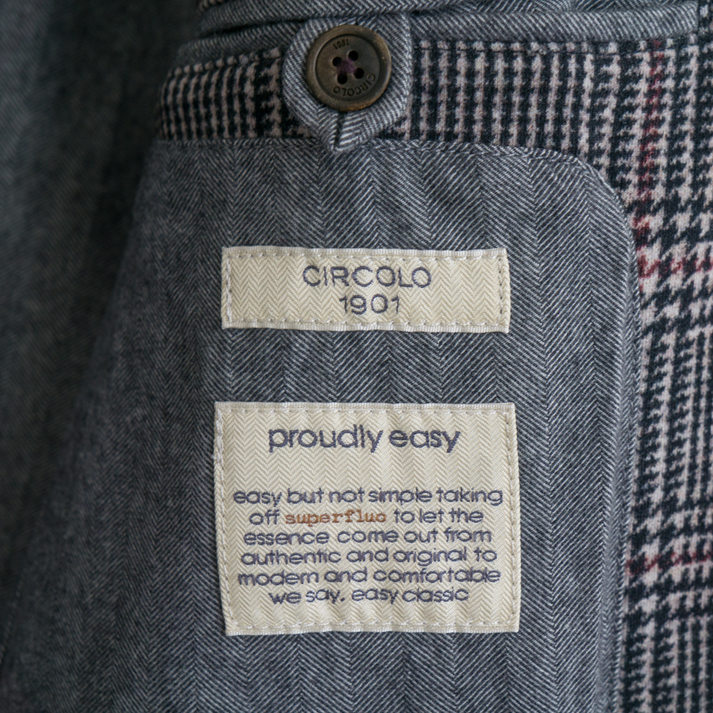 イタリア・バーリに拠点を構える、イタリアのテキスタイルメーカーS.G.L.社が展開するチルコロ(CIRCOLO 1901)。テキスタイルカンパニーならではの高品質な素材使いと斬新な表現で、新しい切り口のイージージャケットの地位を確立するイタリアのブランドです。