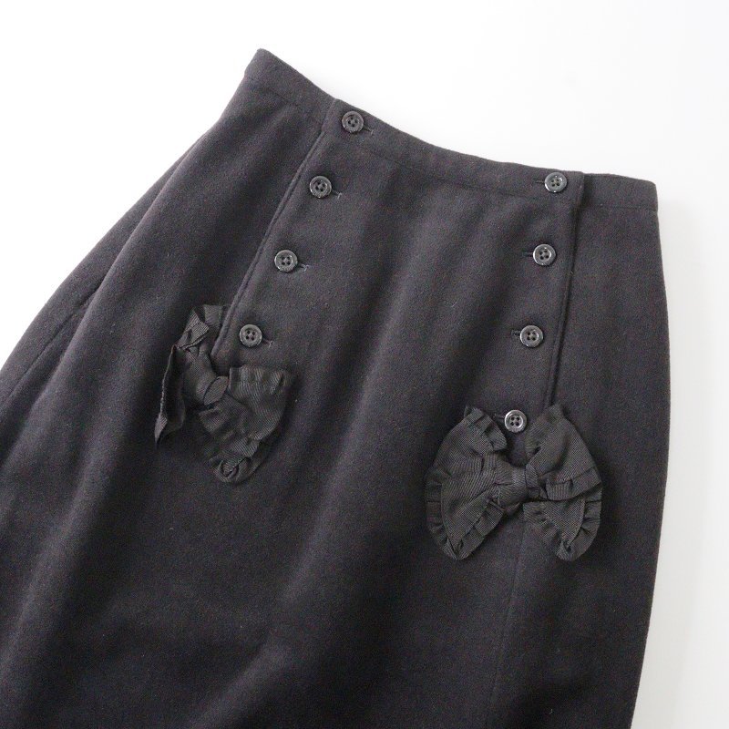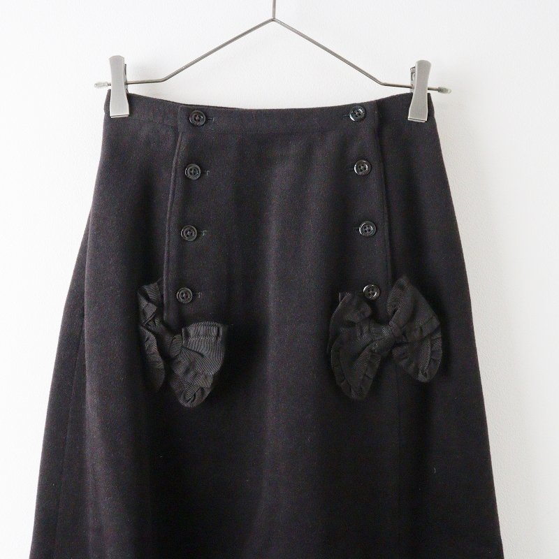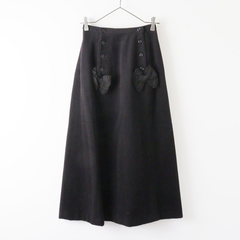 インゲボルグ INGEBORG アンゴラ フロントリボン ロングスカート M/ブラック ボトムス【2400013655712】