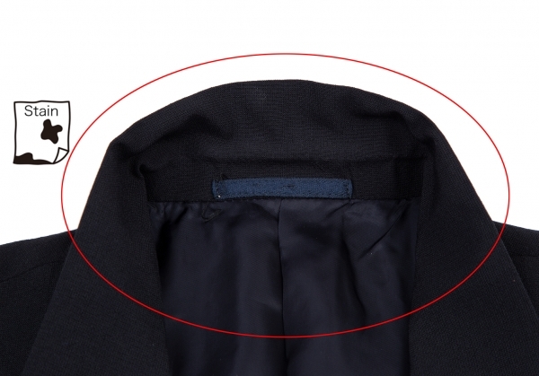 | コンディション | 肩パッドあり。襟裏・袖裏に汚れ、表・裏脇下に擦れ、裏地に薄シミがあります(写真参照)。その他目立ったシミ、汚れ、ほつれ等ありません。クリーニング済み |