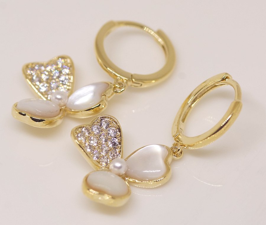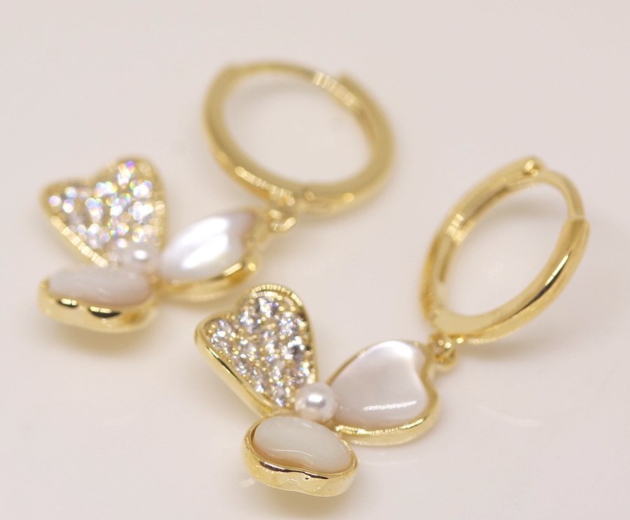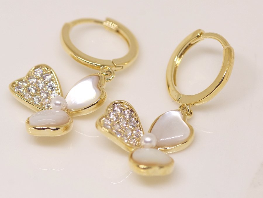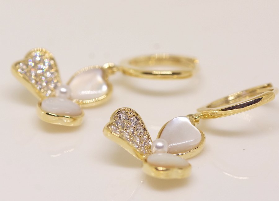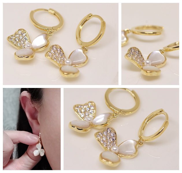 18K RGP ゴールド ダイヤ CZ 三つ葉 リング ピアス gp5563