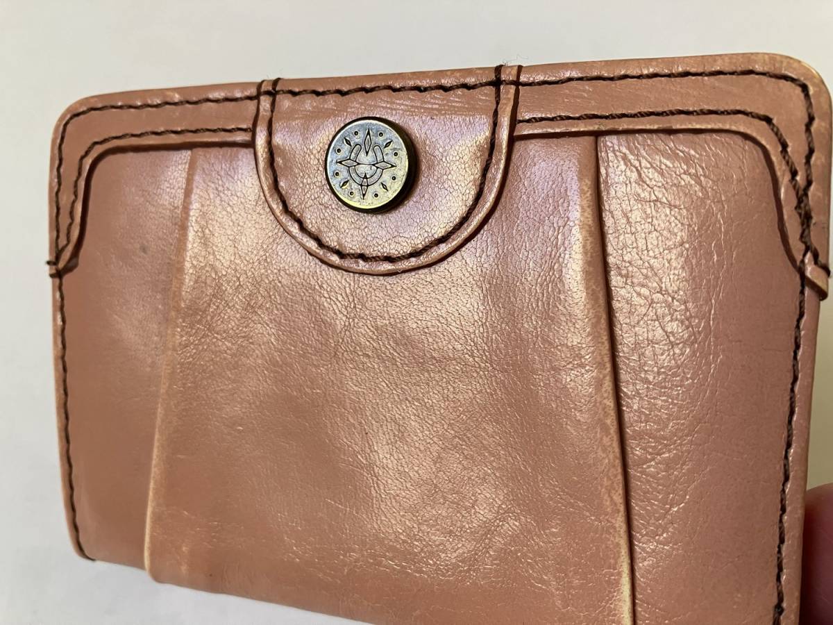 さりげないうすピンク色のダコタの革パスケース。