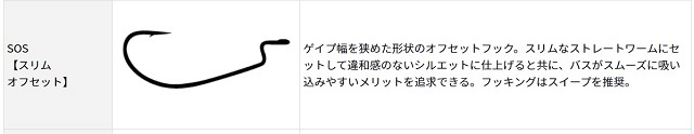 | 商品名 | バザーズワームフックSS スリムオフセットフック(SOS) |