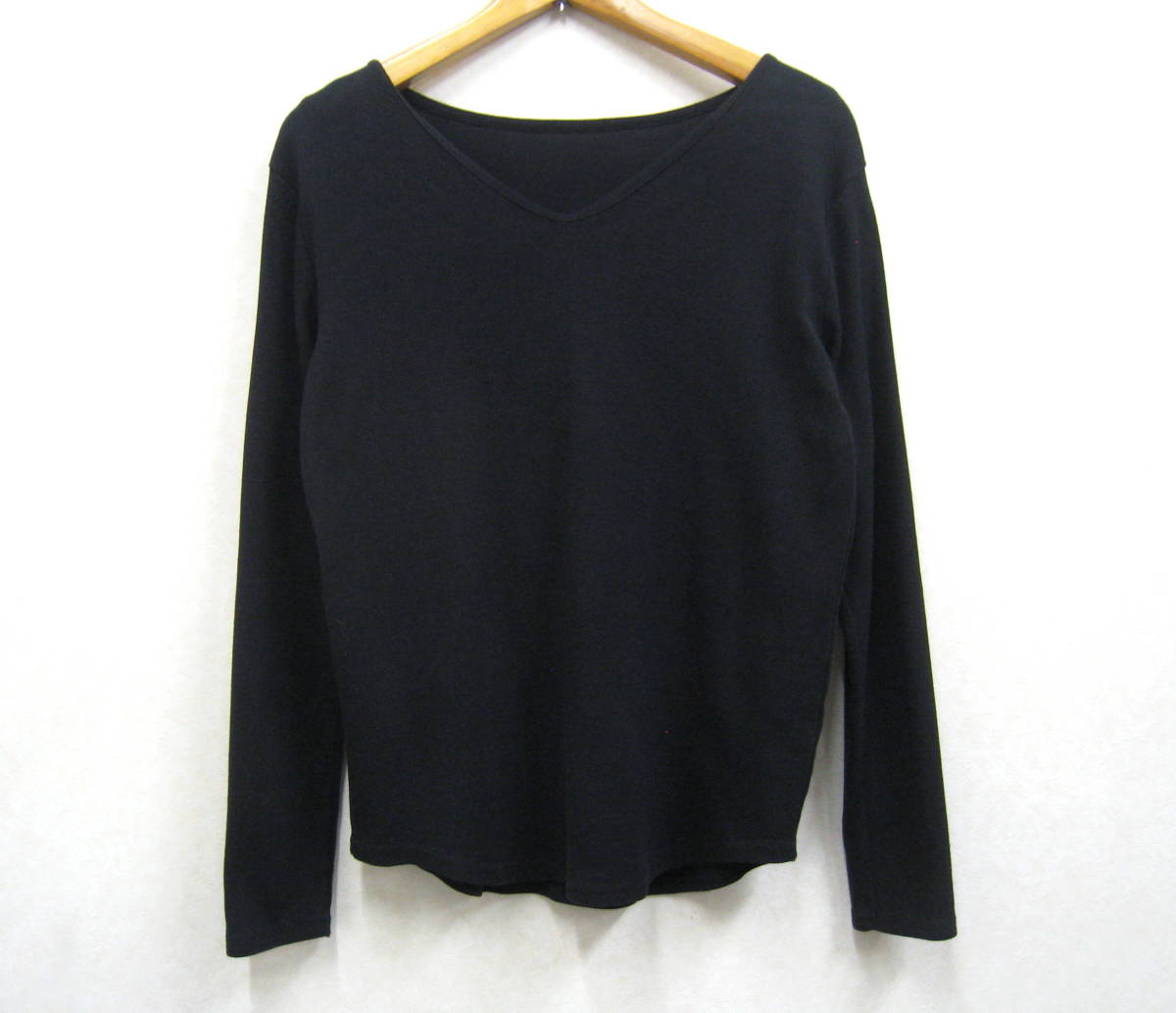 antiqua■アンティカ コットン100% Vネック 長袖 カットソー トップス レディース サイズM ブラック