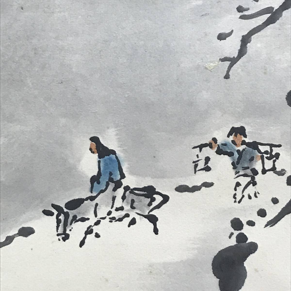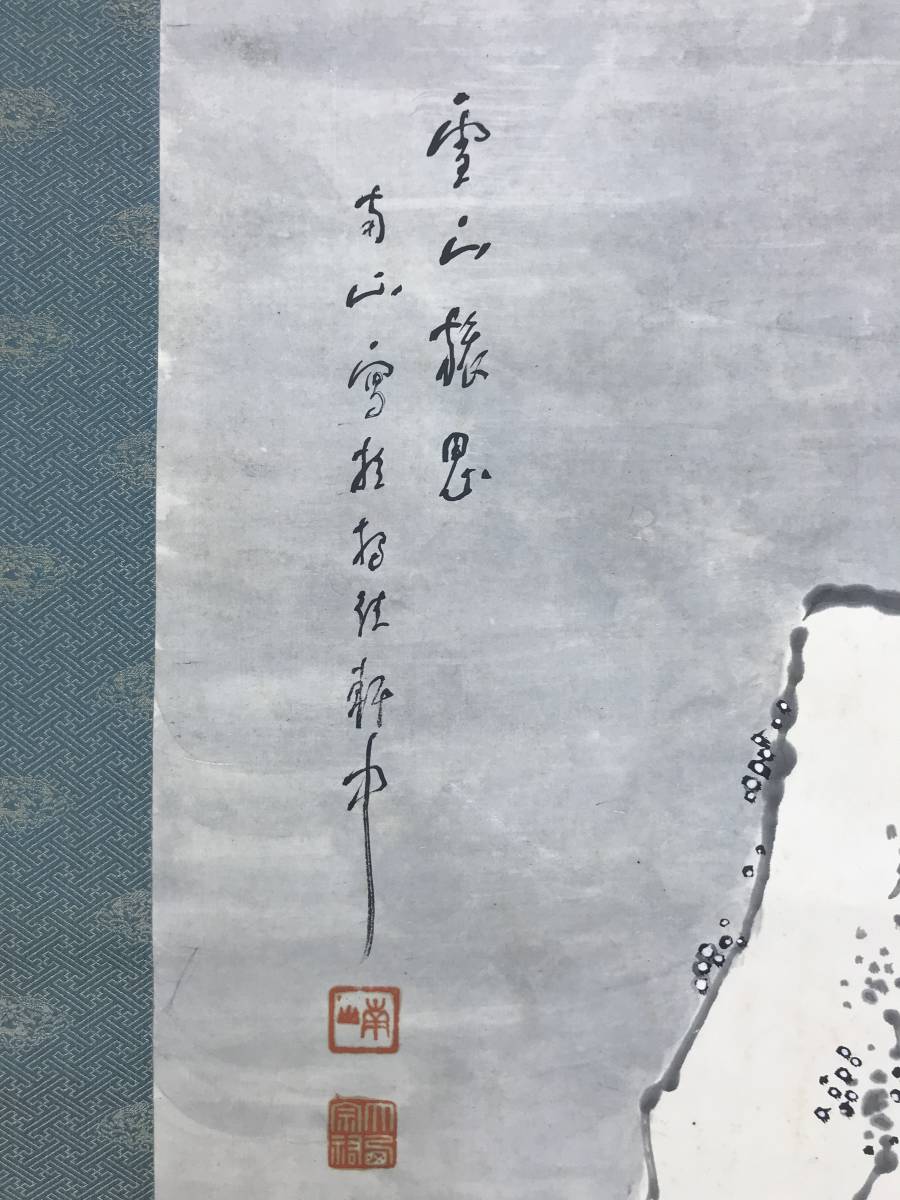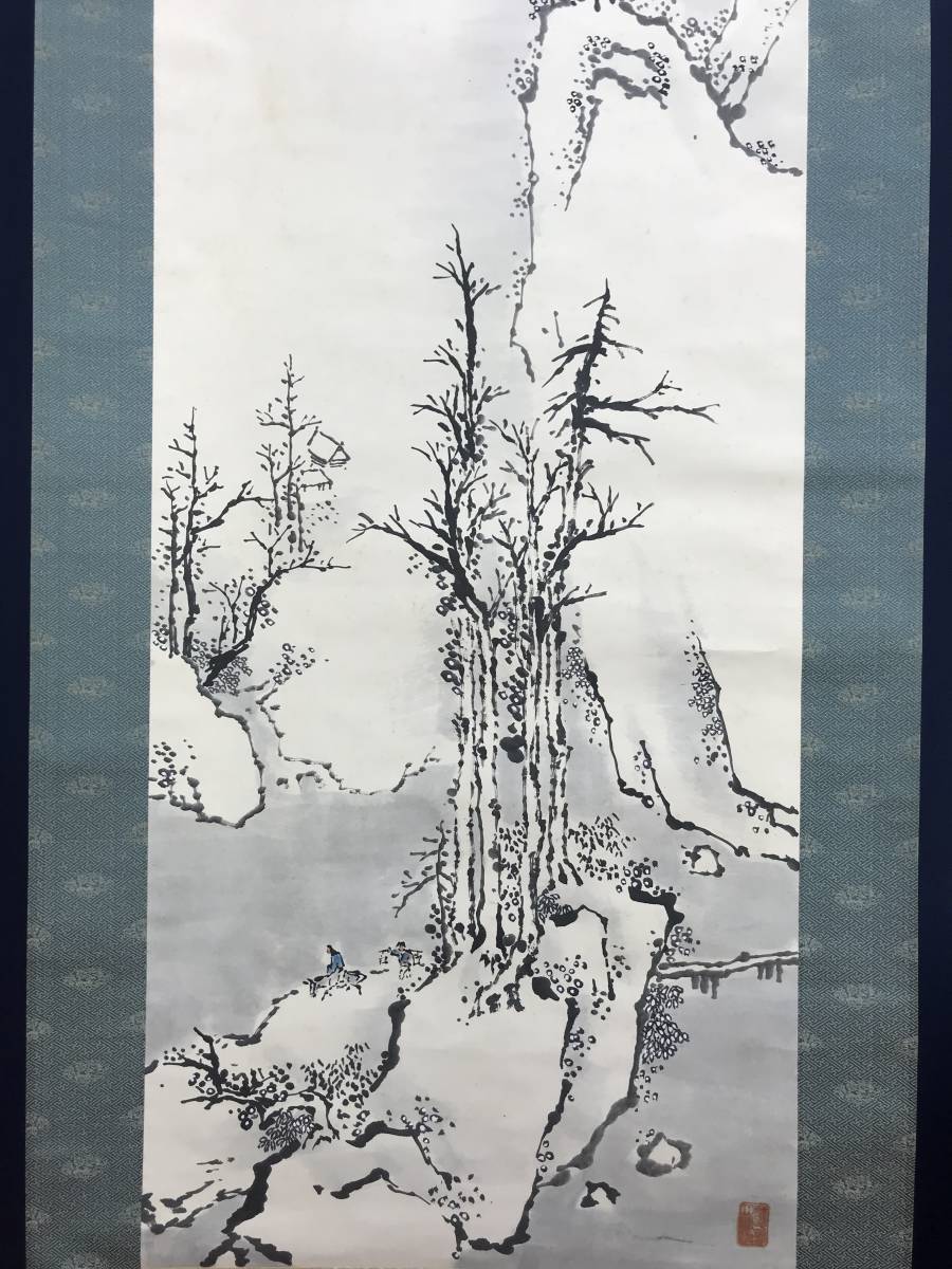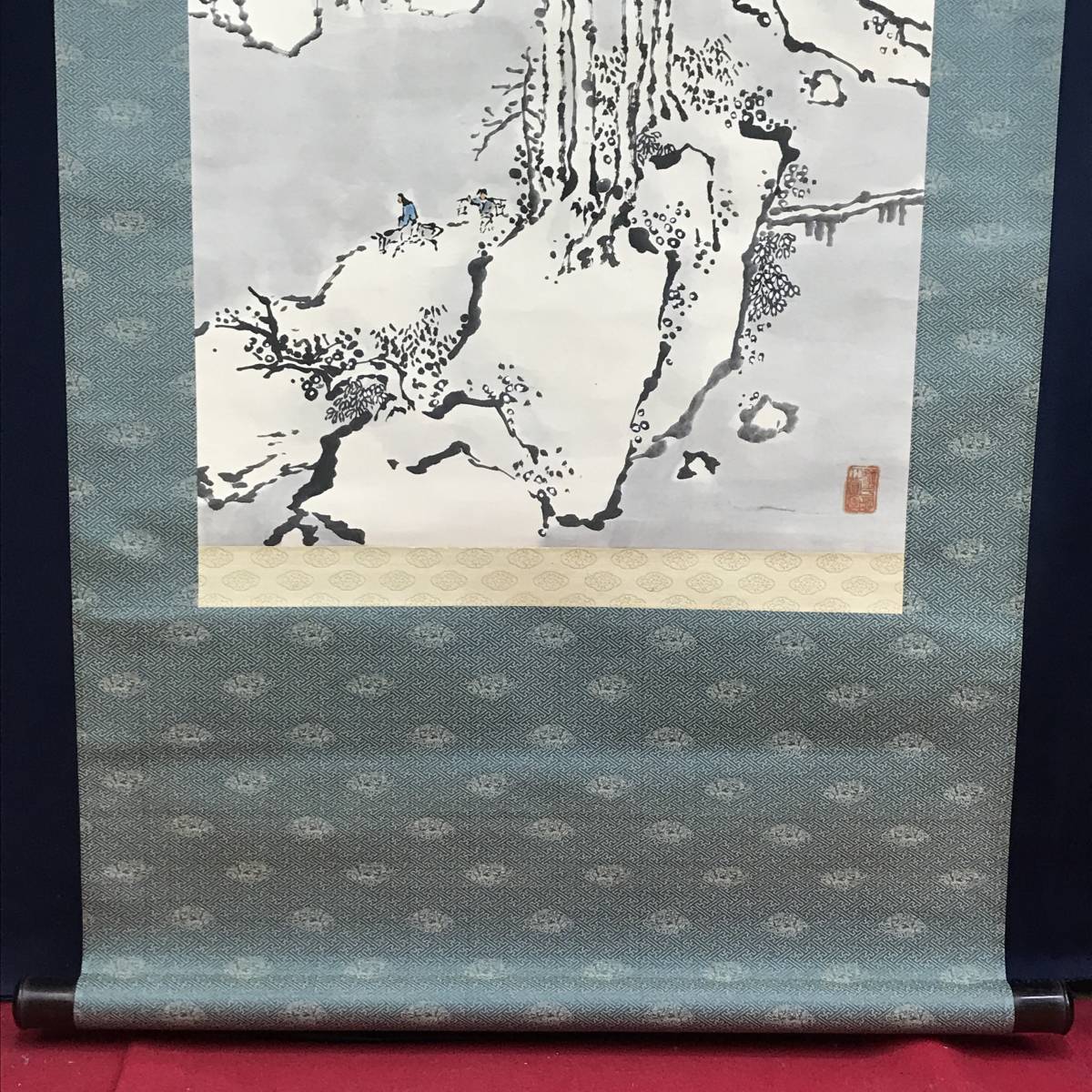 真作/大西南山/雪景山水人物図/山水図//掛軸☆宝船☆AD-564