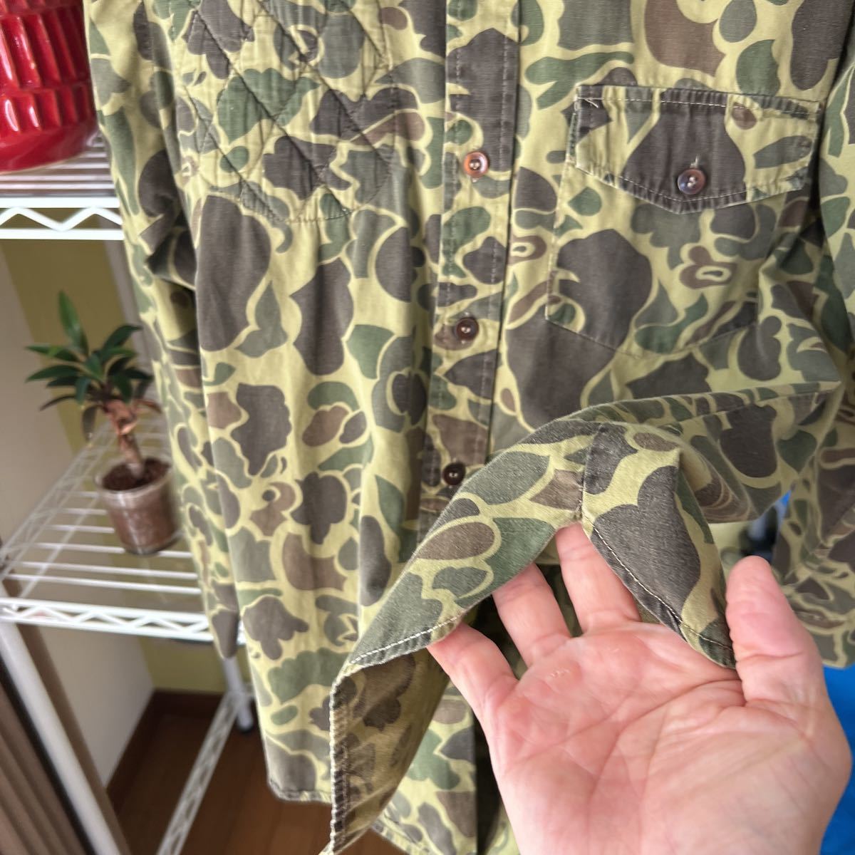 袖丈55(脇下縫目〜袖先端)。多少の誤差はお許しください。良い雰囲気です。香港製ですが古いREDHEAD 綿 ハンティングワークシャツ できる限りダメージは説明させていただきますが、こちらが気づかない程度のわずかなしみ、よごれ、