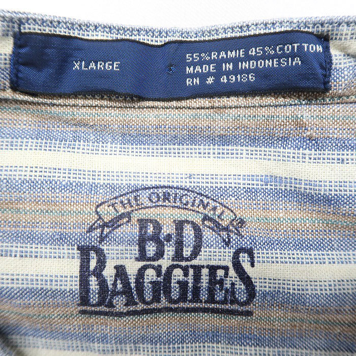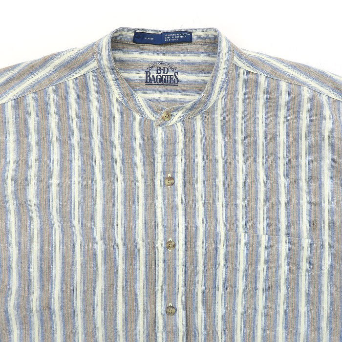 古着 バンドカラーシャツ ストライプ 長袖 マルチカラー サイズ表記:XL gd76196