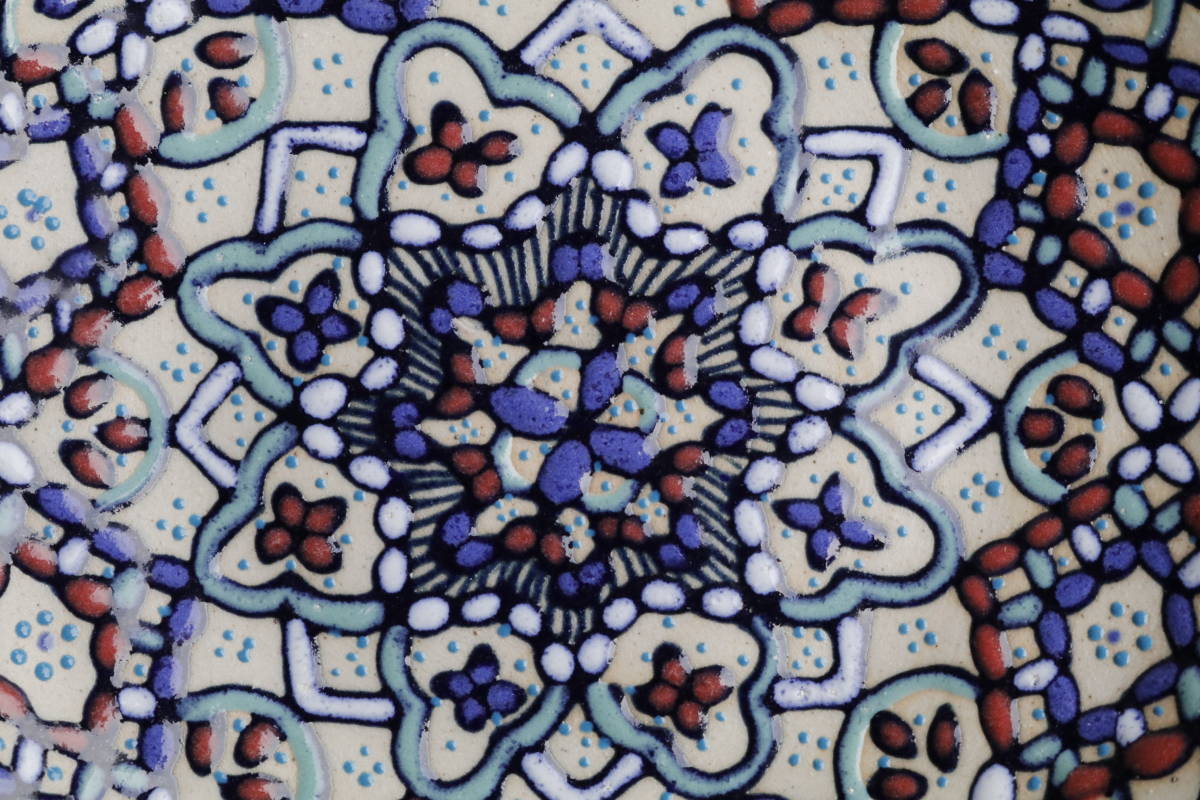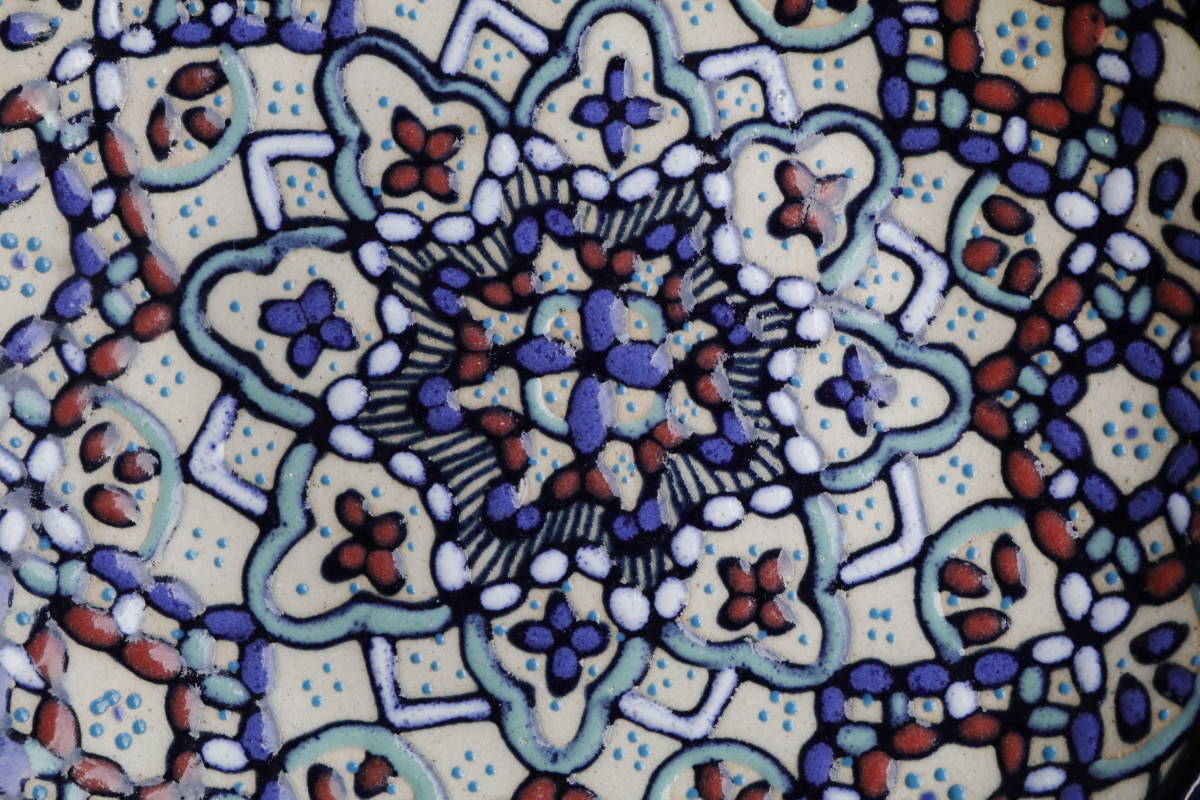 目が痛くなりそうな 繊細な網の模様が印象的な陶器です。