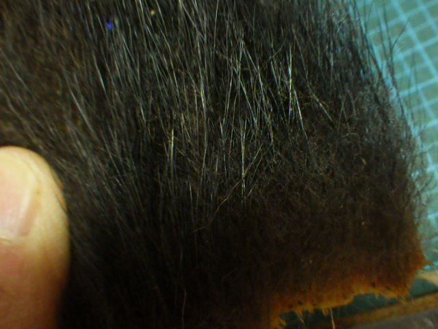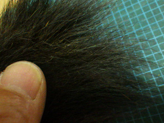 額部分で硬めの30~40mmのヘア