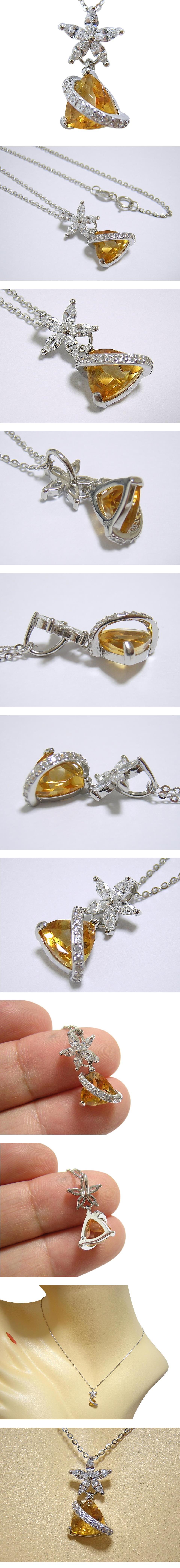 ブラジル産の天然シトリンとキュービックジルコニアを使用したペンダントネックレスです。