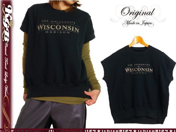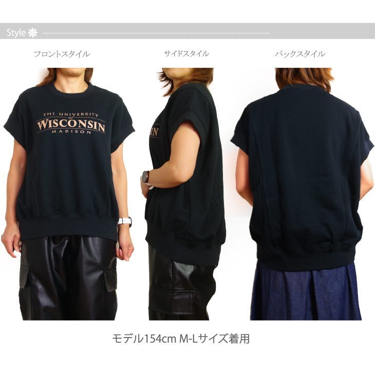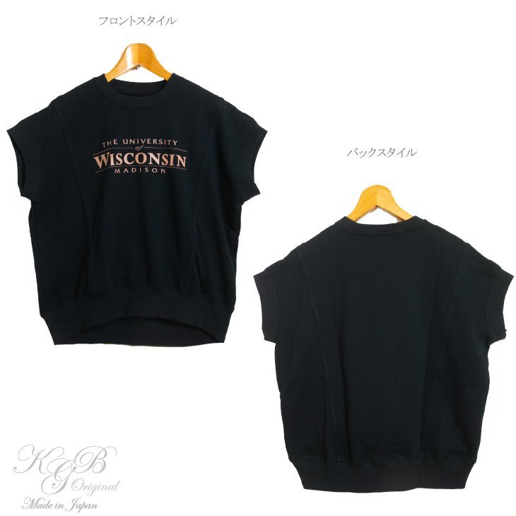 スウェット 半袖 裏毛 レディース 日本製 オリジナル ラバープリント Wisconsin L~LL ブラック×カーキ 新品