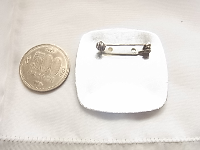 ビンテージ/ヴィンテージ 4.5センチくらいの大きさ 中華系のお花みたいな模様 薄いグリーンベースにお花柄 昭和 モダン ブローチ◎