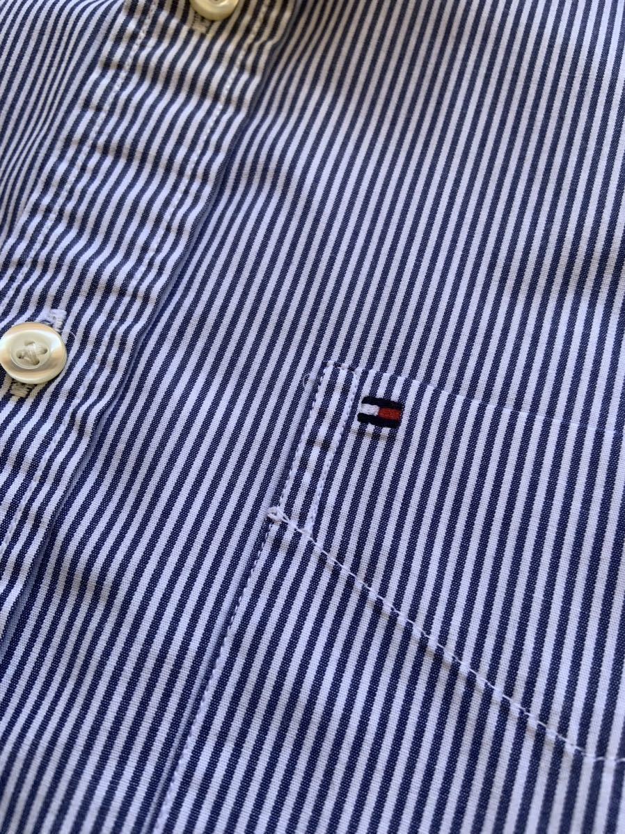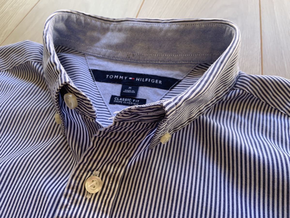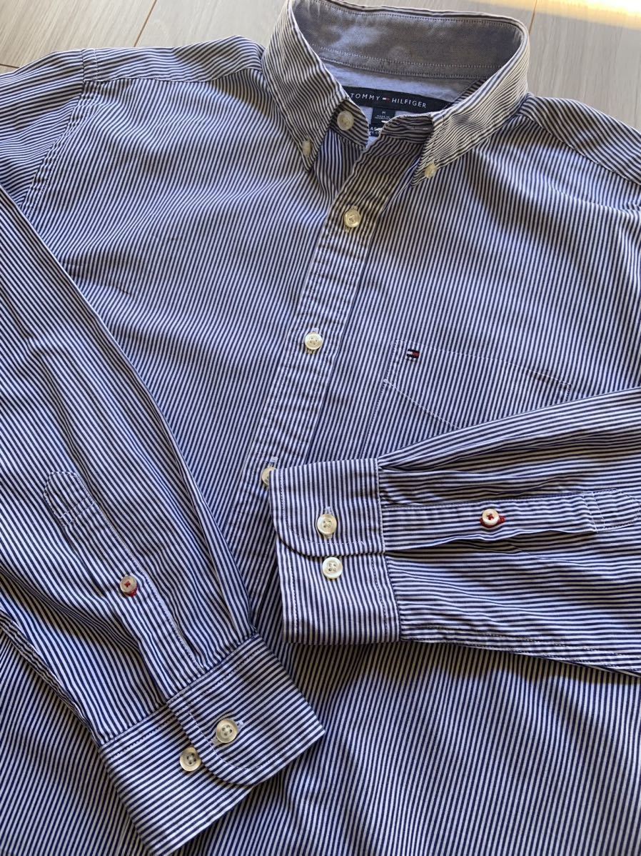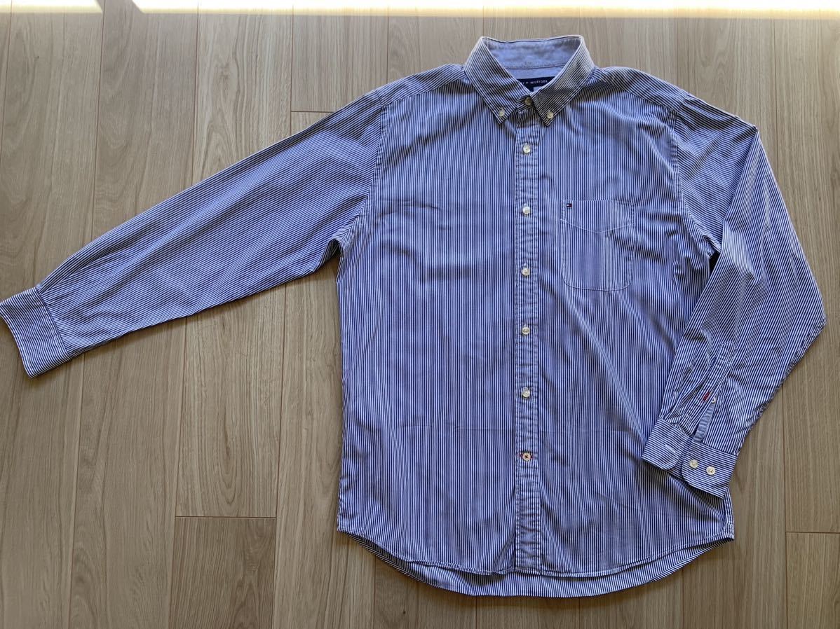 ◇トミーヒルフィガーのストライプボタンダウンシャツです。サイズはUSのMですので、日本のM〜Lサイズです。