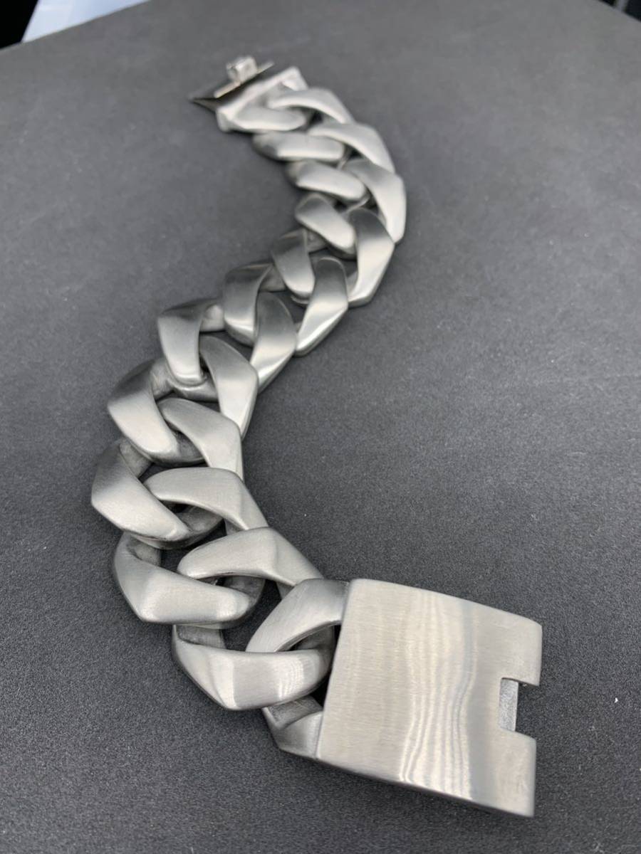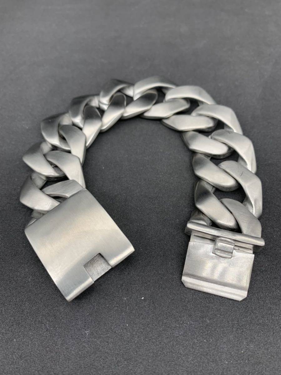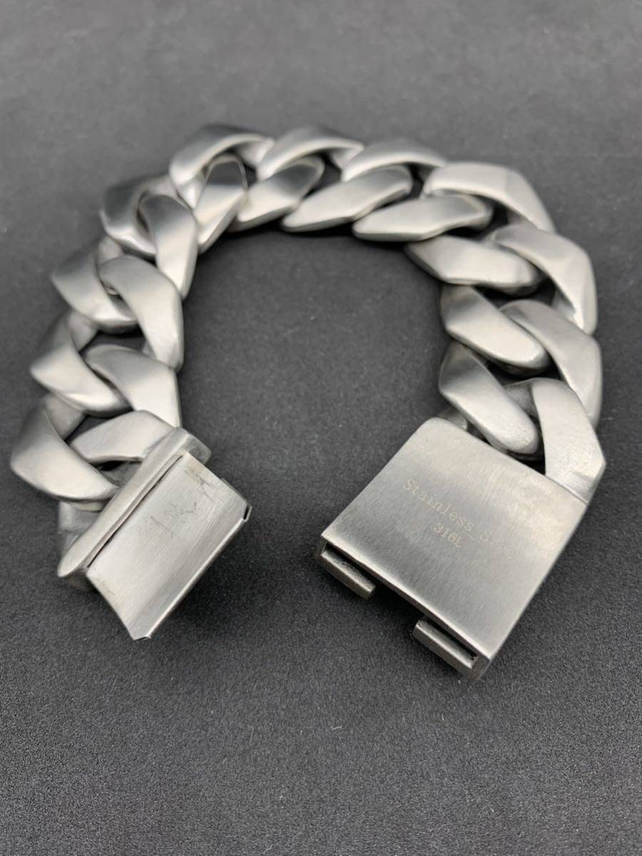艶消しマッド シルバー カラーのステンレス チェーン ブレスレットです。