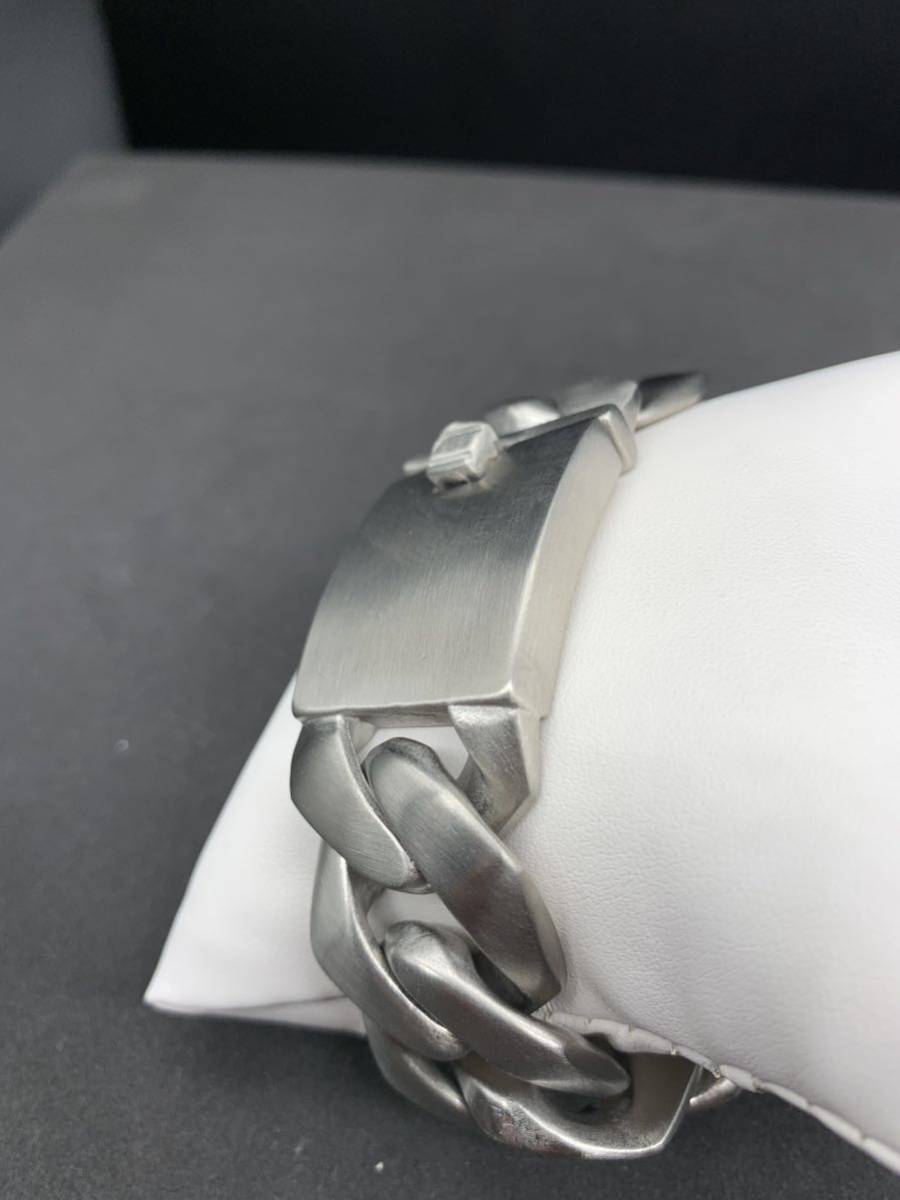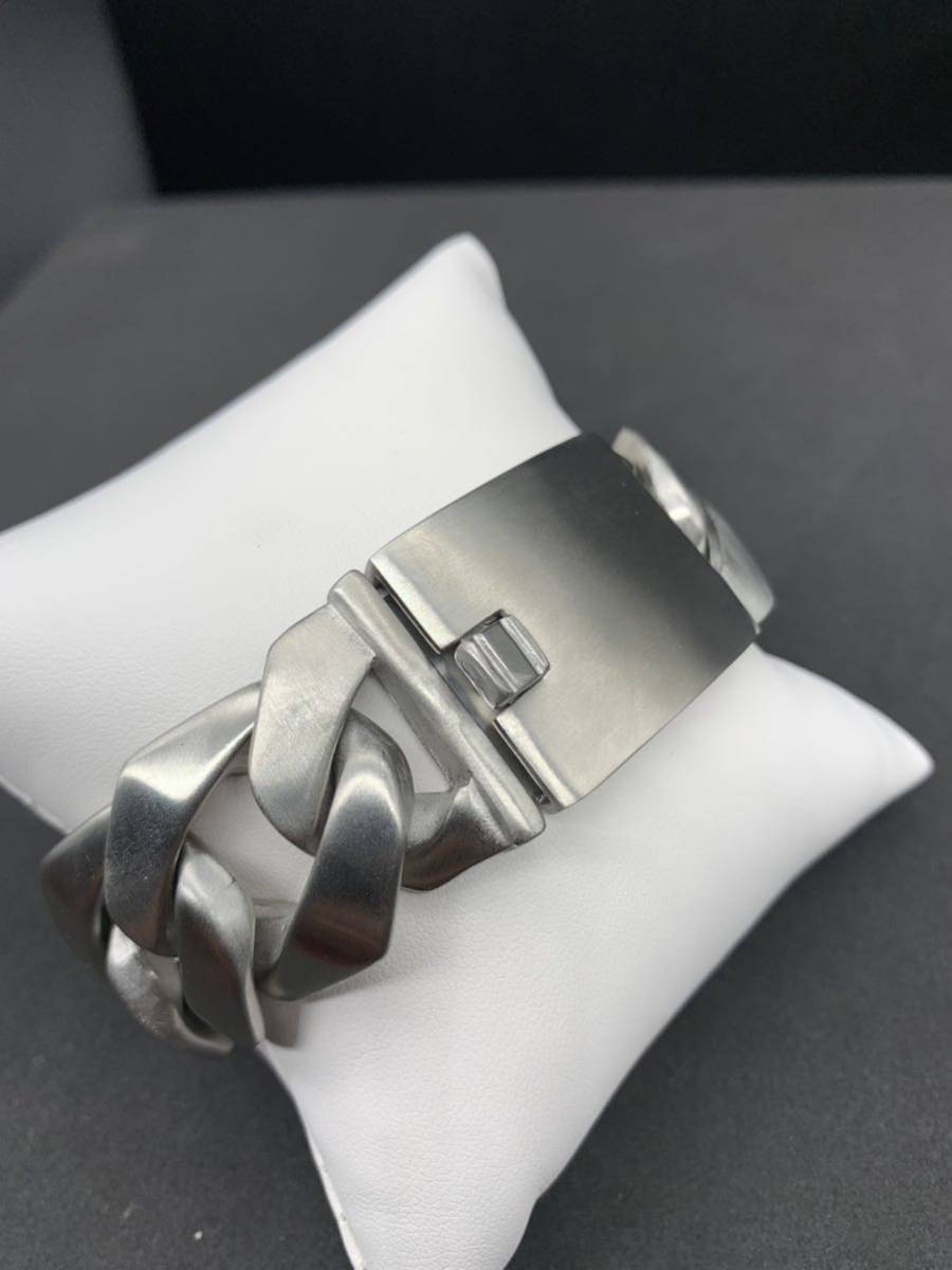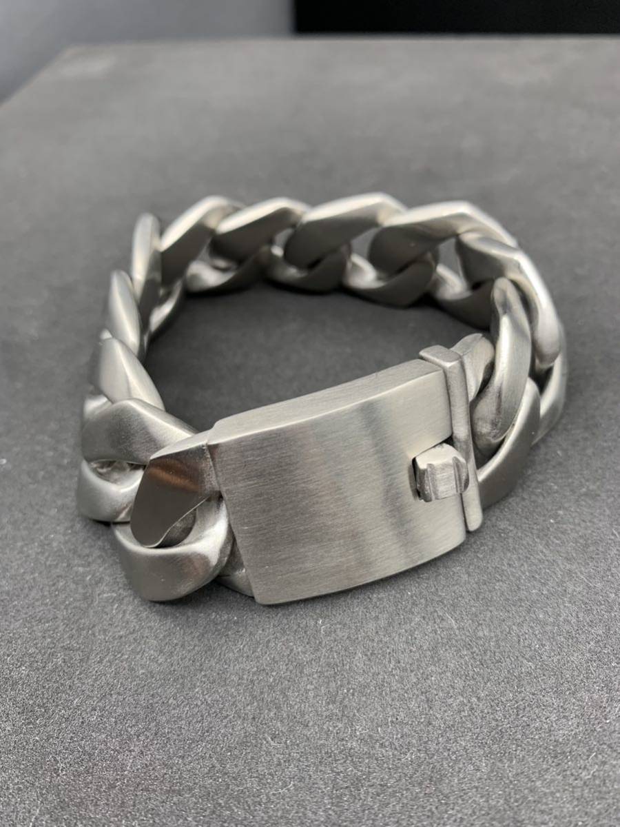 艶消しマッド シルバー カラーのステンレス チェーン ブレスレットです。