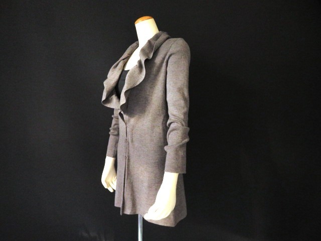 ■綺麗な上質美品【 NARACAMICIE 】ナラカミーチェ 高級 フリル ストレッチ ニット ロング カーディガン グレー【Ⅰ】9号 M w1692