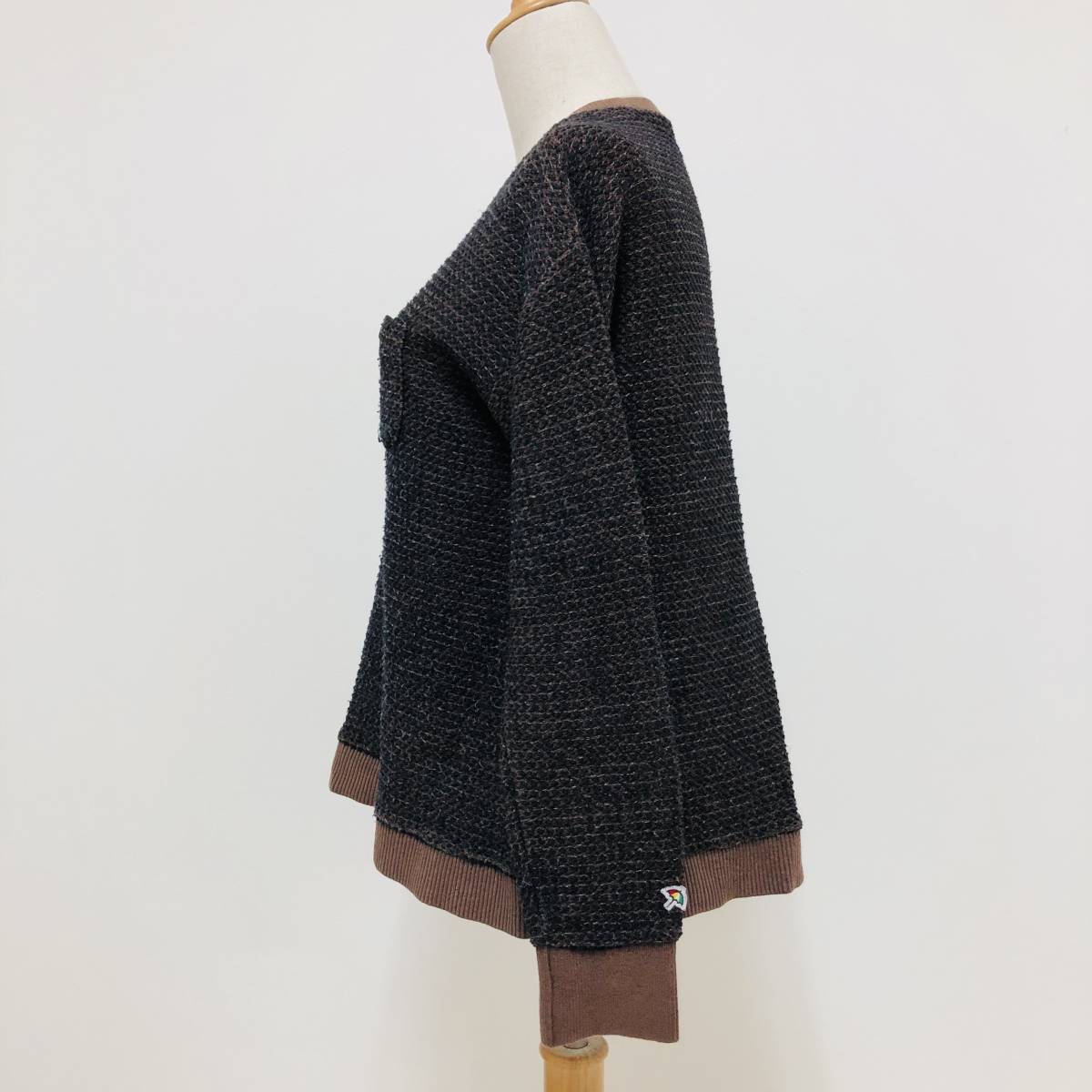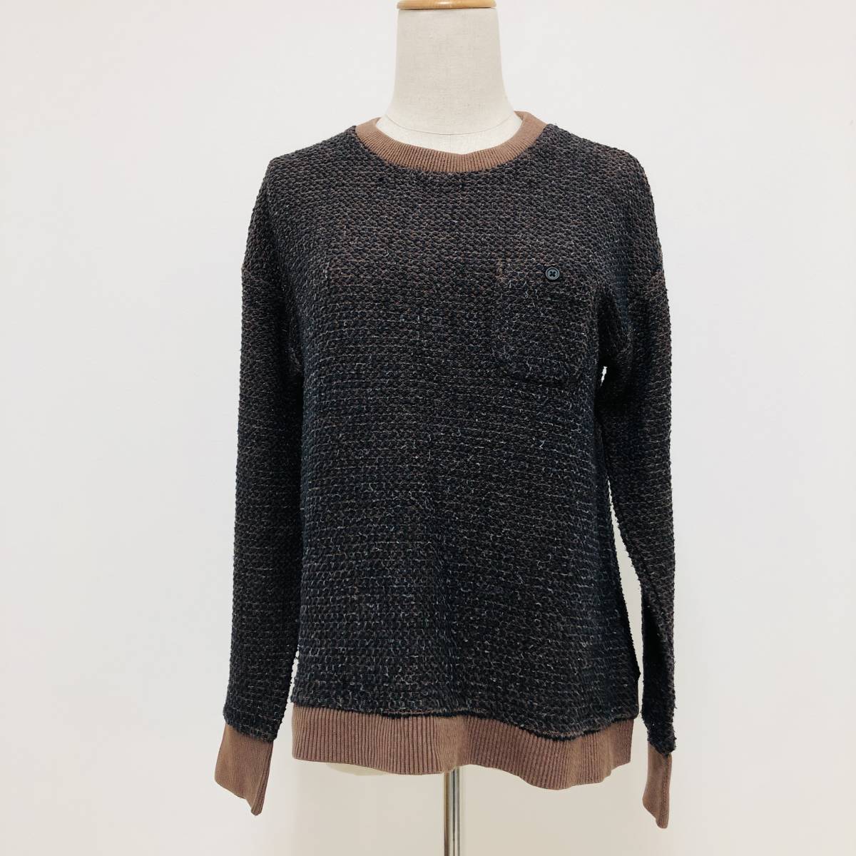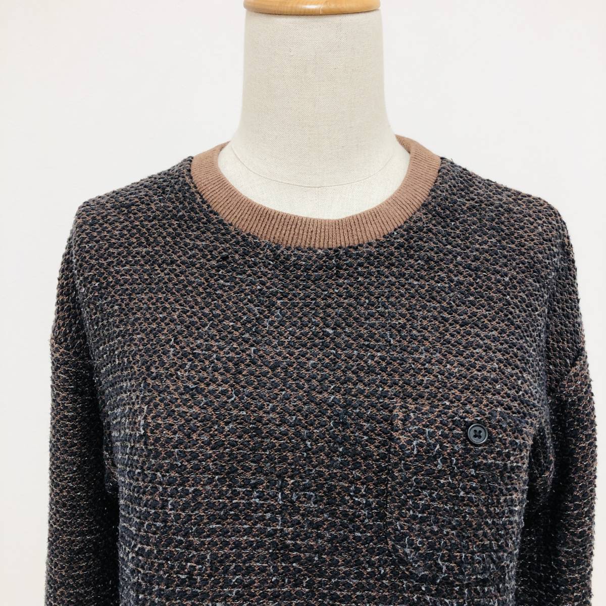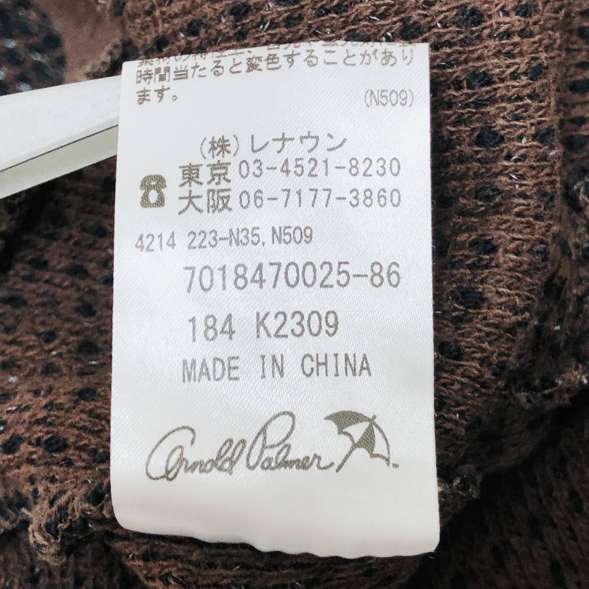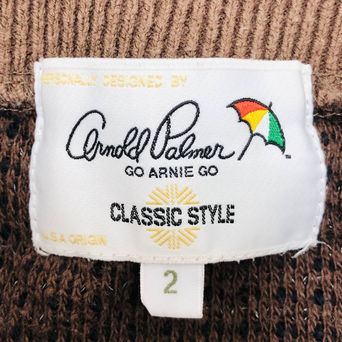 k1557 Arnord Palmer アーノルドパーマー ニット 長袖 綿混 胸ポケット ロゴワッペン サイズ2 ブラウン系 柔らか雰囲気 クラシカルチック