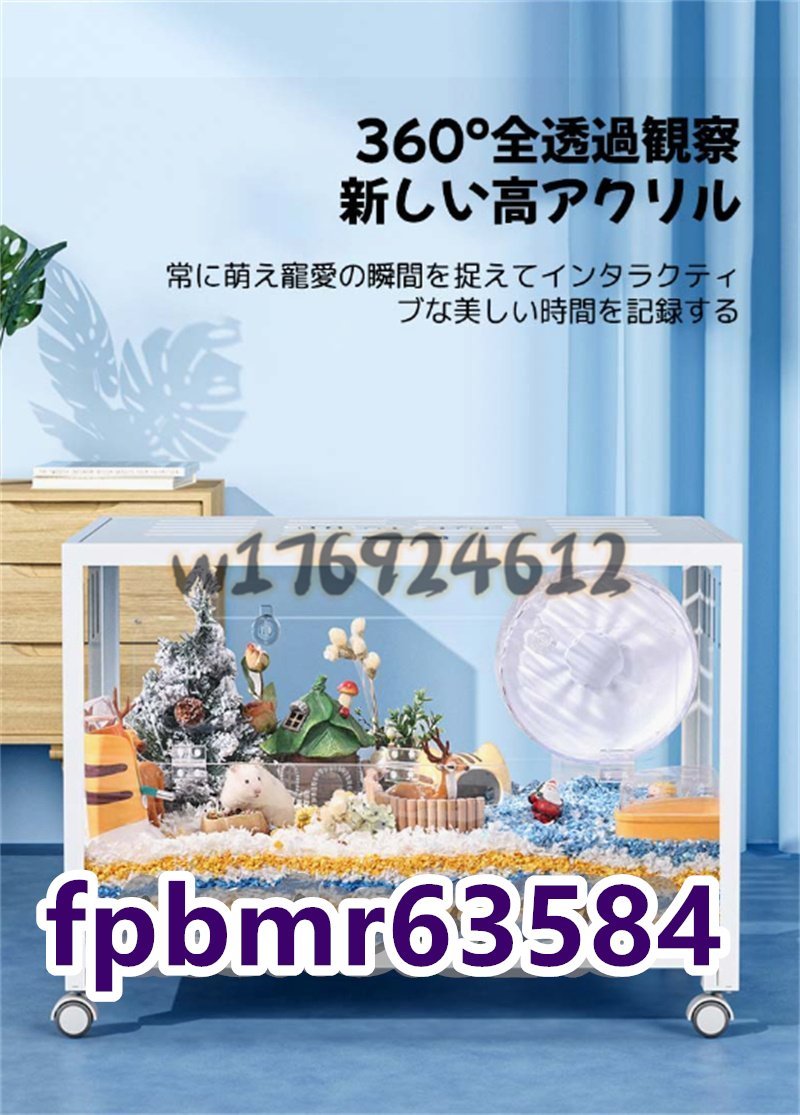 【おしゃれ全面クリアケージ 】側面は高品質のアクリル材質を採用し、ケージ内のハムスターがよく見えます。シンプルなデザインでインテリアになじみやすいので、レイアウトを自由に変更しで楽しく飼育できます。