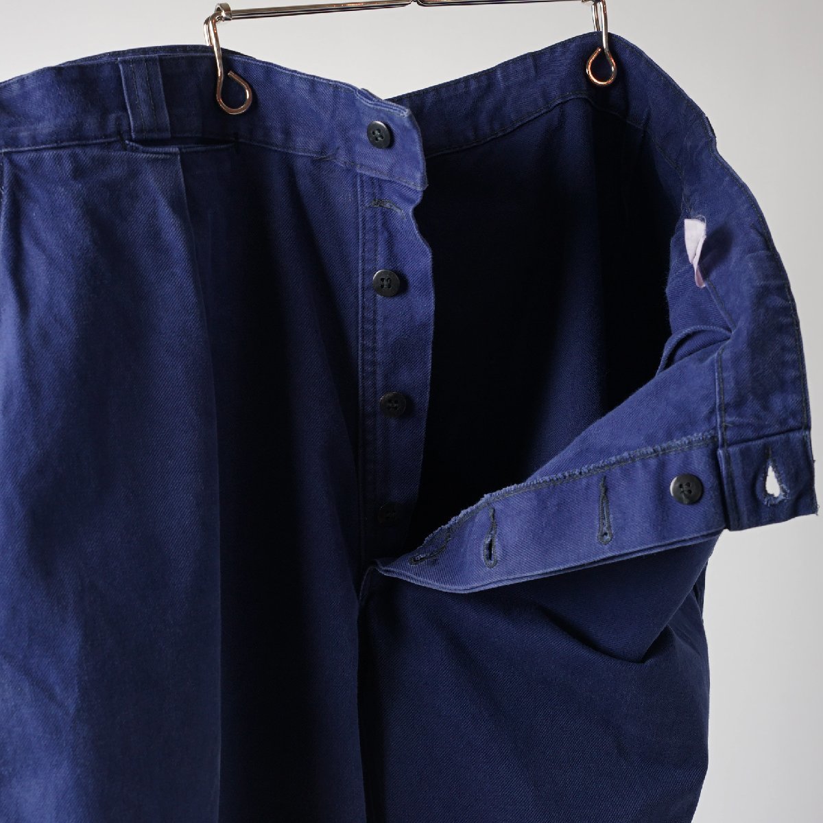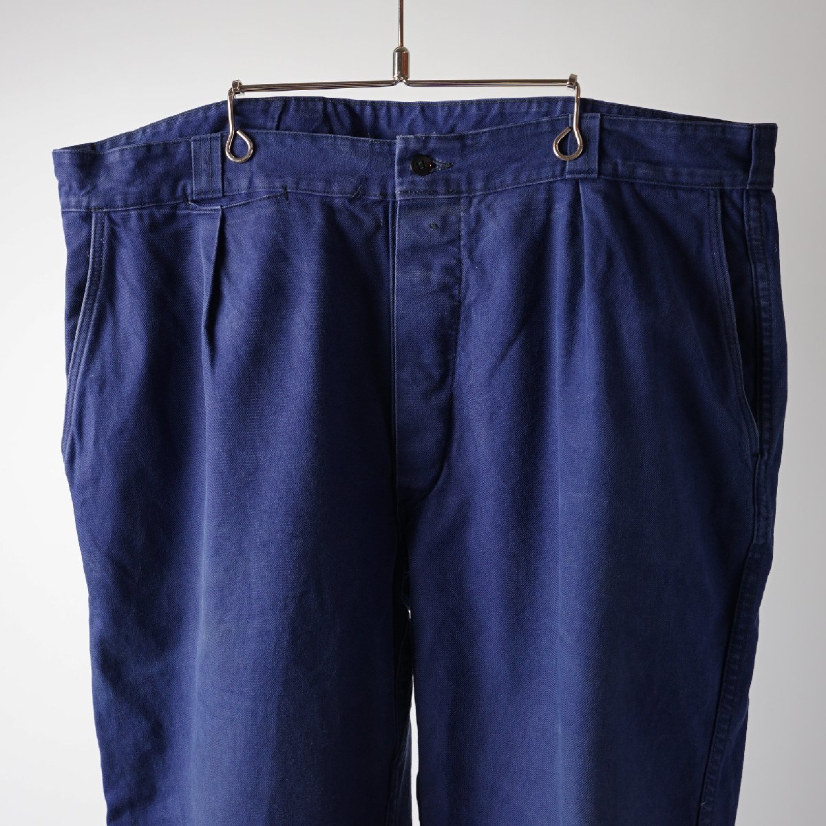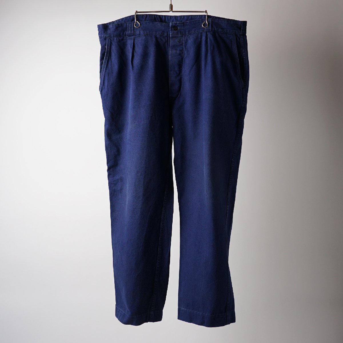 フランス ヴィンテージ ワークパンツ タックパンツ コットンツイル インクブルー[C837]