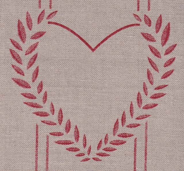 リネンバンド 刺しゅう布 ドイツV&H リネンテープ幅26センチ ハートリース柄 リネン生地 麻布