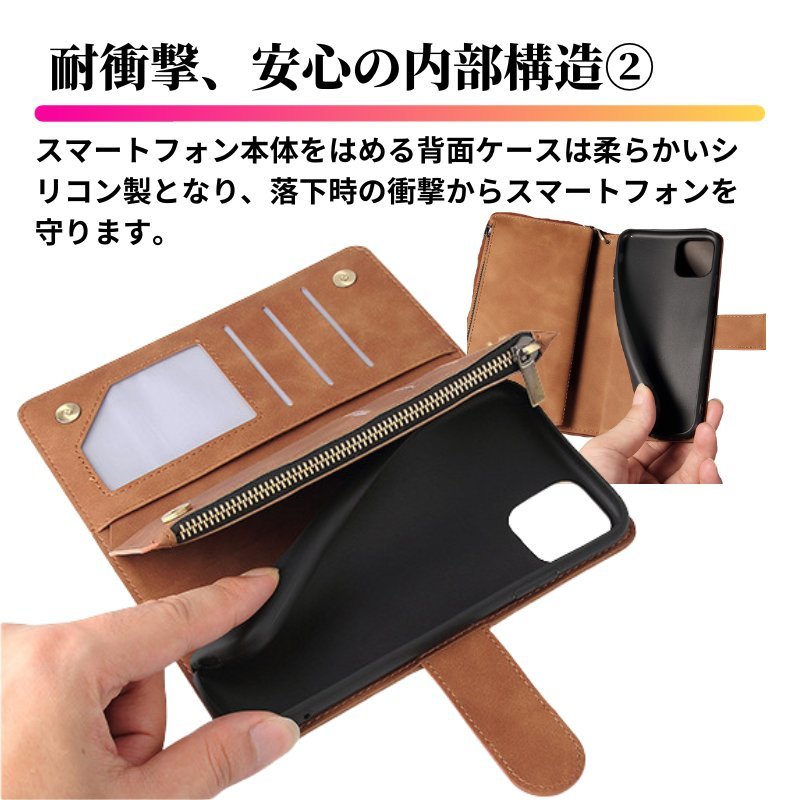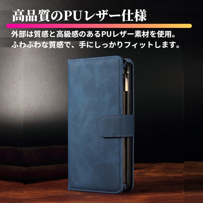 外部は上質なPUレザーを採用し、 ふわふわな質感で、手にしっかりフィット。 内部は柔らかいTPU材質を採用し、本体への衝撃を緩和させる仕様で、キズや衝撃から大切な携帯をしっかり保護