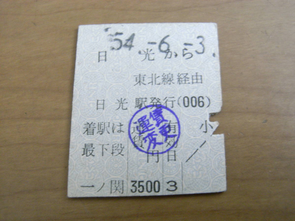 日光線 日光から一ノ関 東北線経由 昭和54年6月3日 日光駅発行 国鉄 準常備券