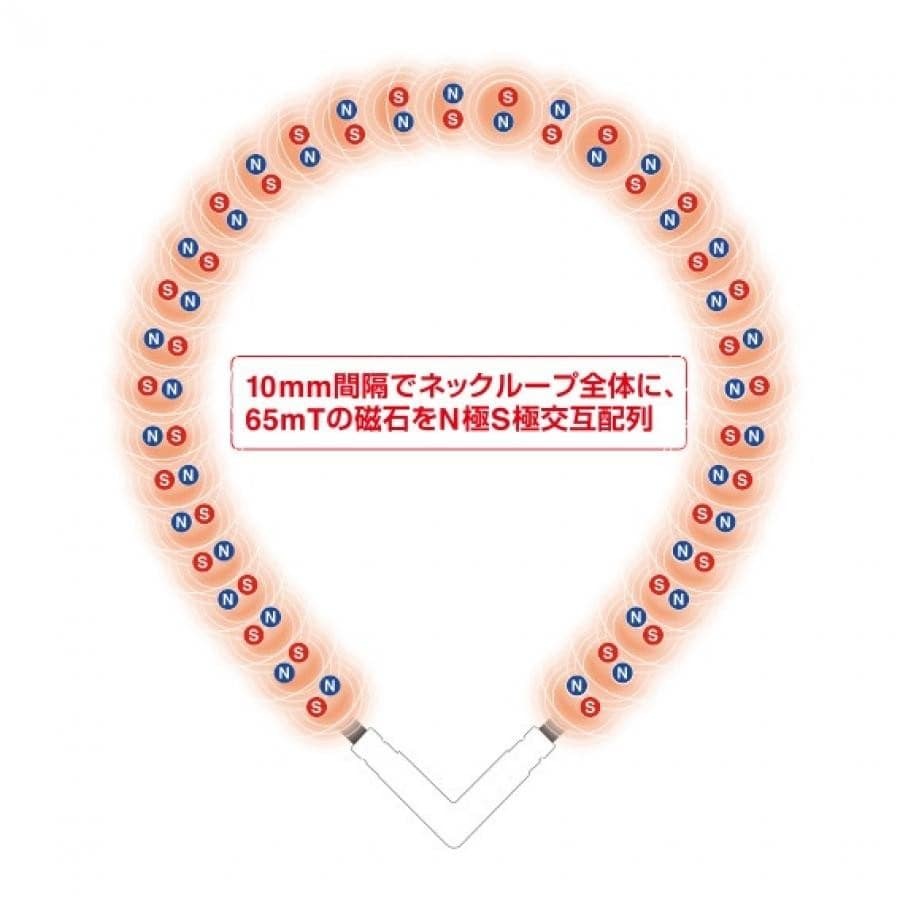 ネックループ全体に磁石がN極S極交互配列で配置されており、