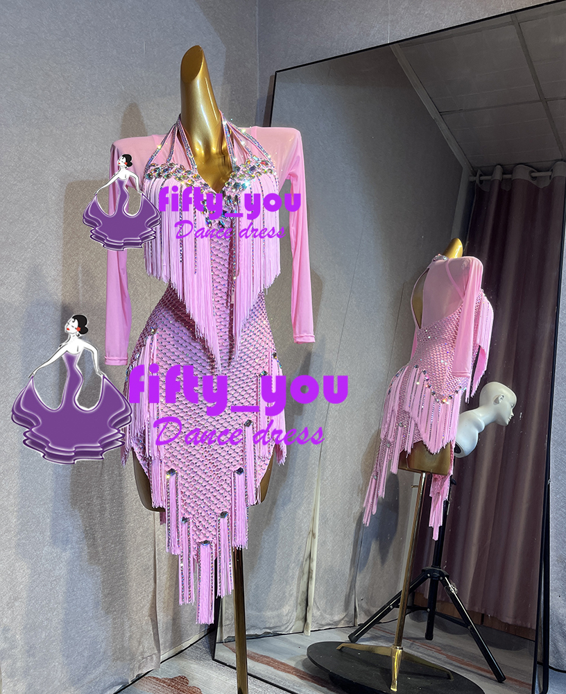 新品fifty_you オリジナルデザイン レディース社交ダンスドレス サイズオーダー ラテン競技パーティドレス お洒落新作 ピンク
