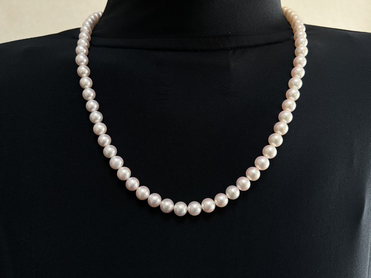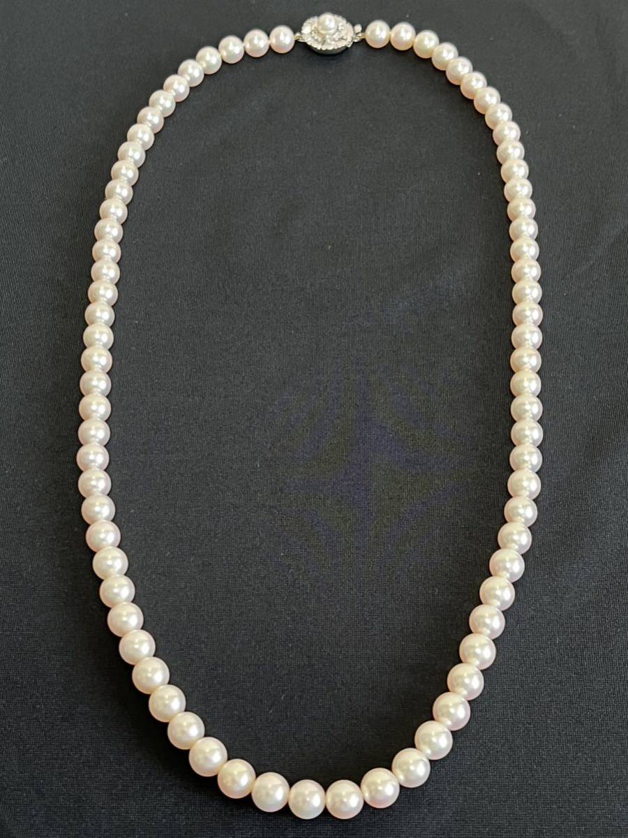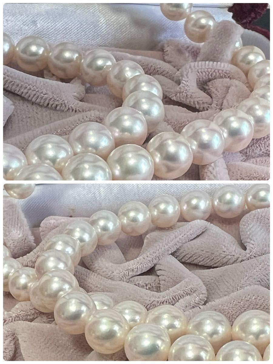 | ご覧いただきありがとうございます。 8mm珠 75珠、長さ約63cm 留め金K14WG、重さ 約62.3g 淡いピンクに見えます。 個人的にはきれいな状態だと思います。 長期保管品になります。 専門知識がありませんので詳しいことはわかりません。 現状での出品になります。 写真を確認して現状をご理解の上、入札願います。 | ||
