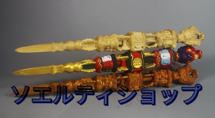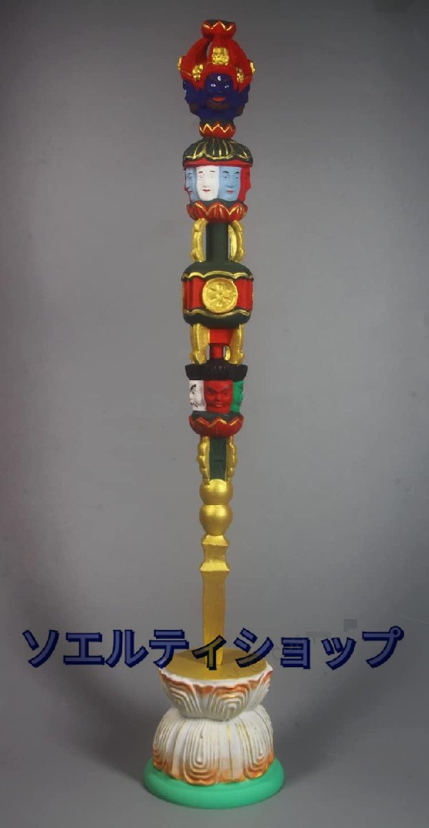 木彫仏具 烏枢沙摩明王 金剛杵 ◆密教で使われる仏具・密教法具・寺院仏具・手道具・ (高さ28cm, 彩色)