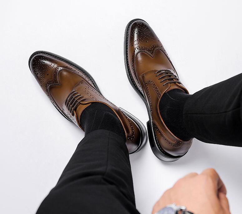 新品 シューズ メンズ ビジネスシューズ イギリス風 ウイングチップ 本革 レザーシューズ 正規品 手作り 革靴 通勤 コーヒー 24.5cm~27cm