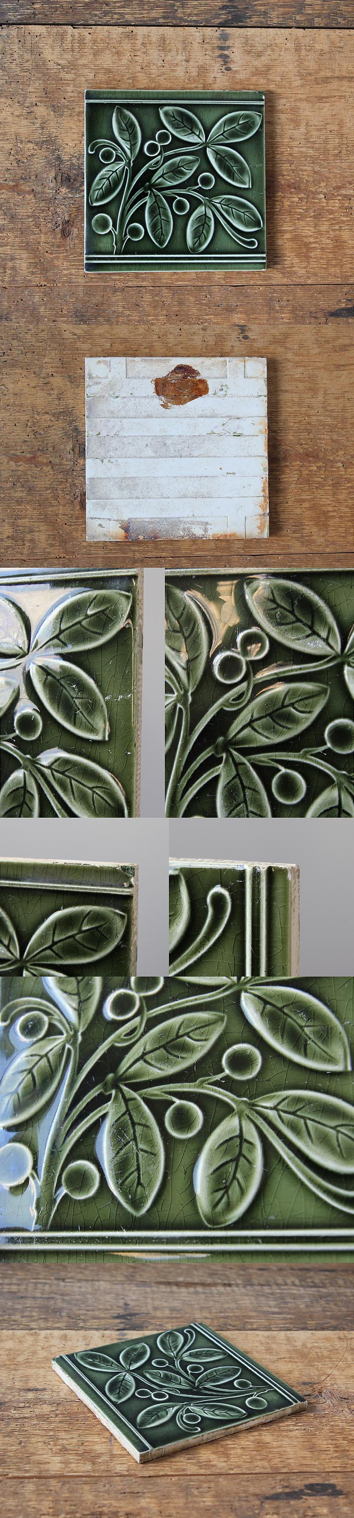 イギリスから直輸入した古いアン ティークタイル。植物の美しいデザインタイルです。