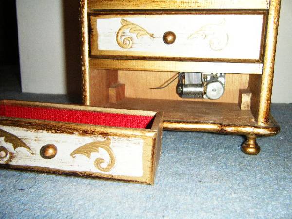 下の引き出しを開くと・・オルゴ-ルが鳴ります。