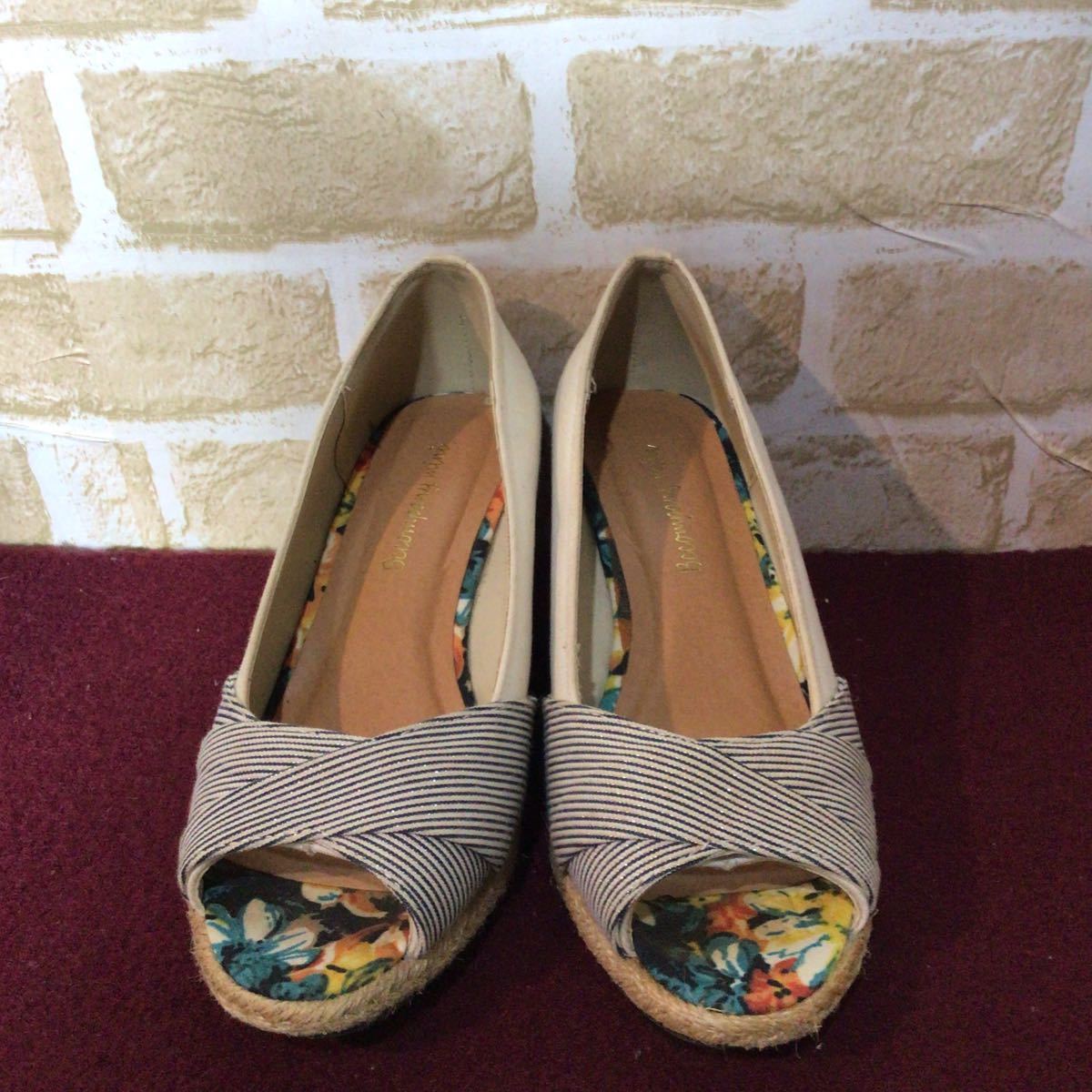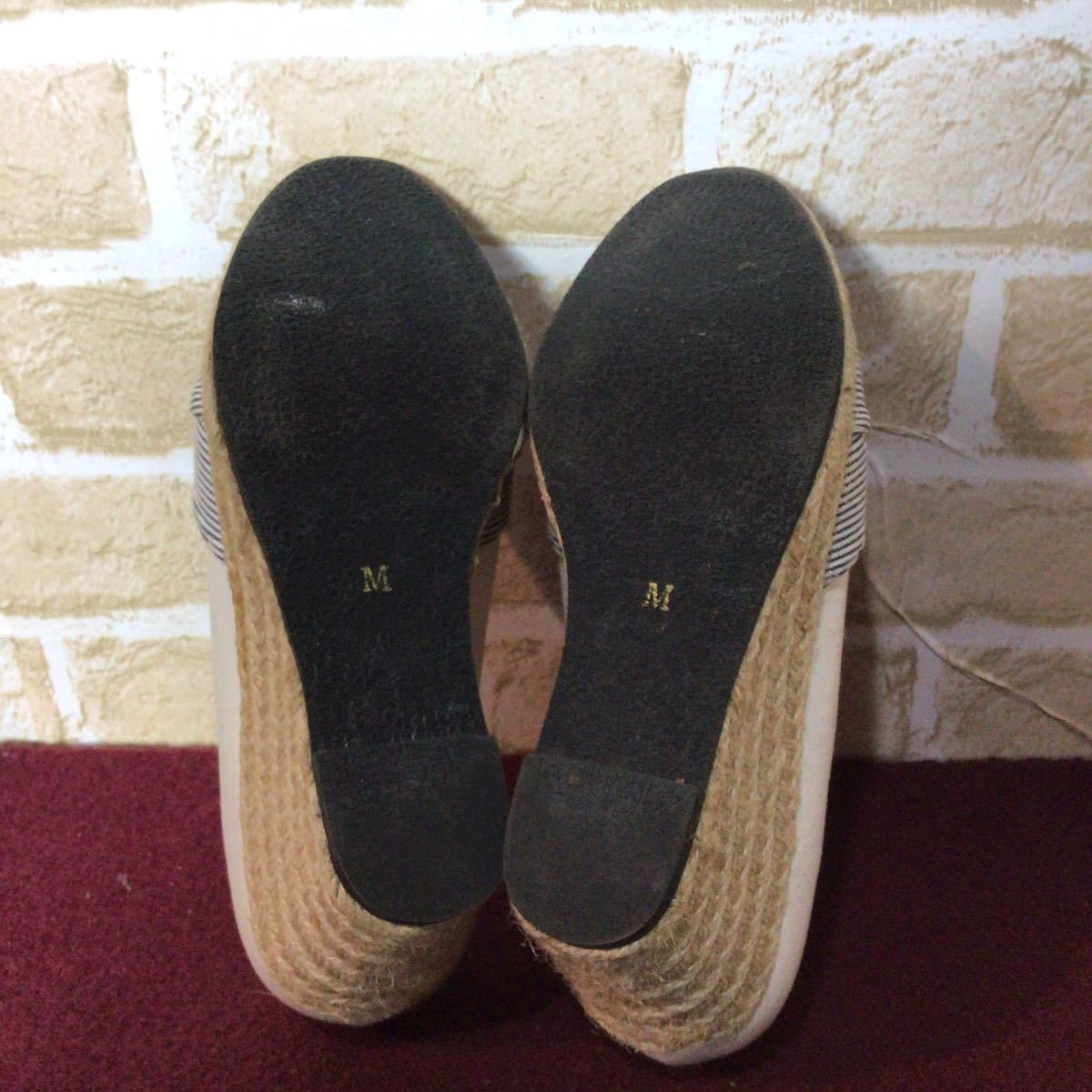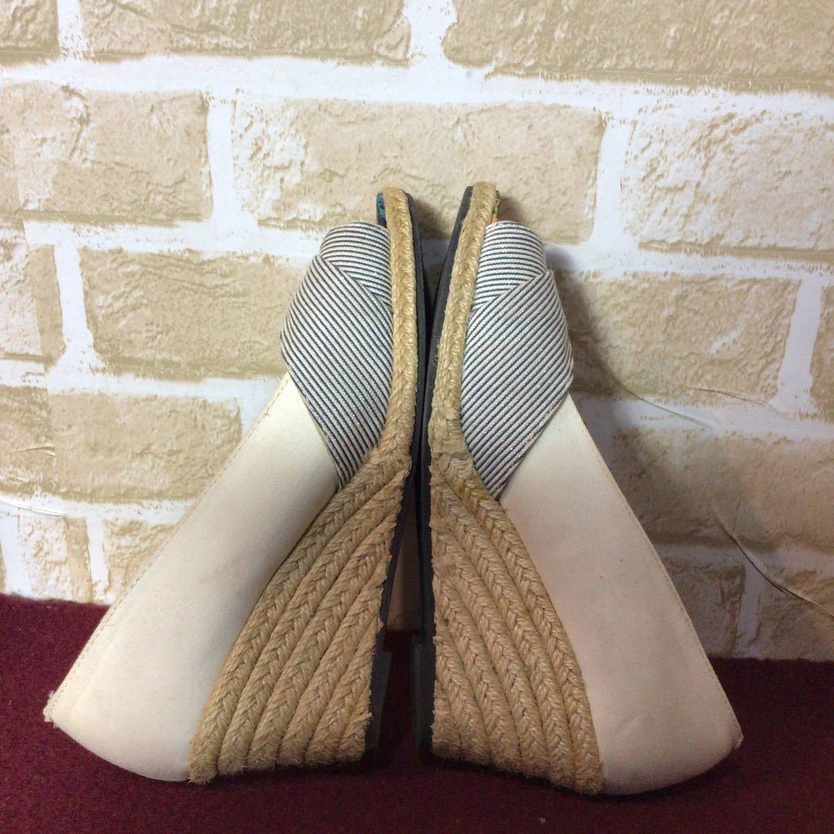 【売り切り!送料無料!】A-205 Buccompany mimi!オープントゥ!サンダル!白!ホワイト!ストライプ!青!ブルー!おしゃれ!かわいい!中古