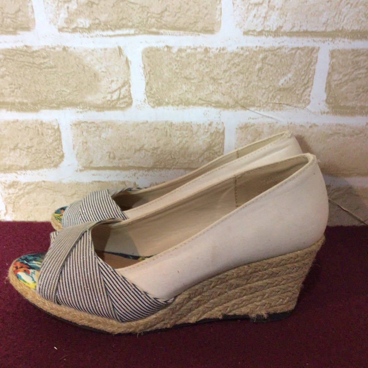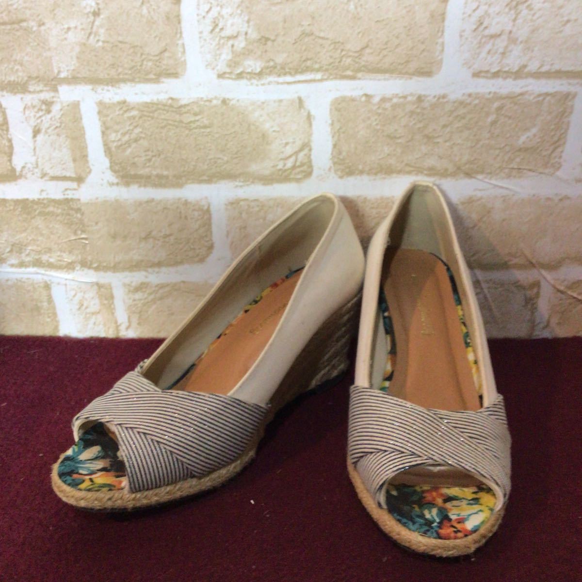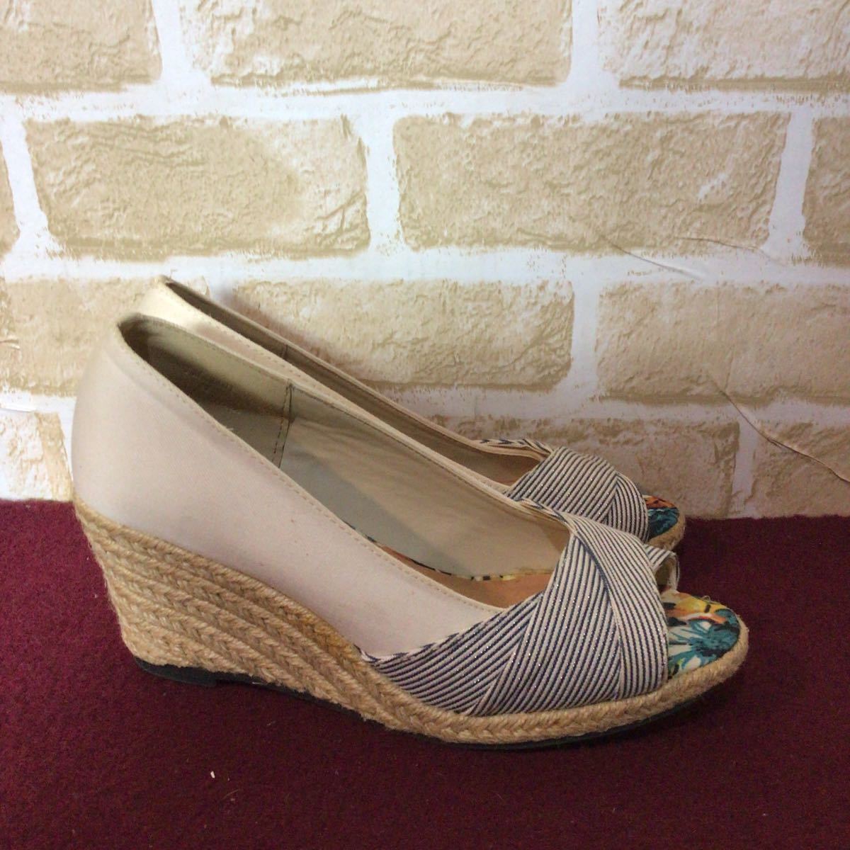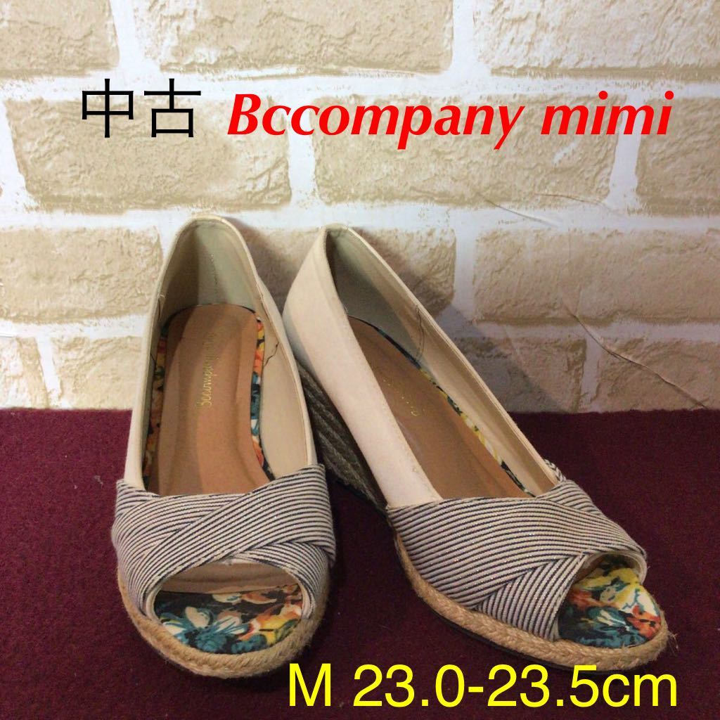 【売り切り!送料無料!】A-205 Buccompany mimi!オープントゥ!サンダル!白!ホワイト!ストライプ!青!ブルー!おしゃれ!かわいい!中古