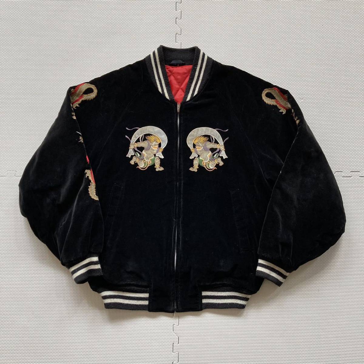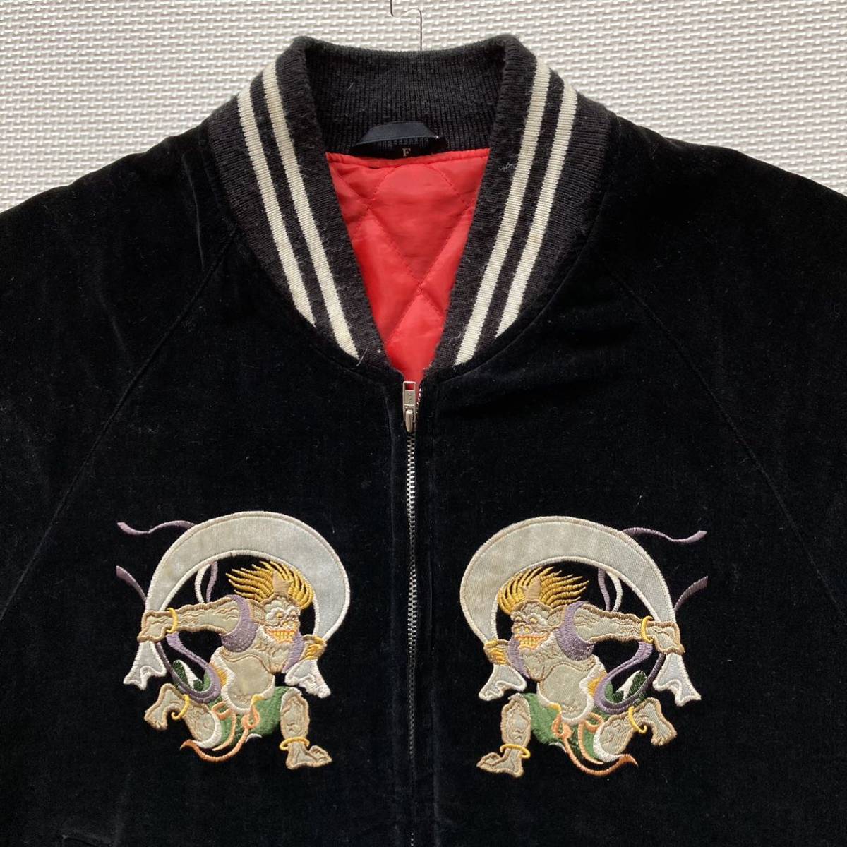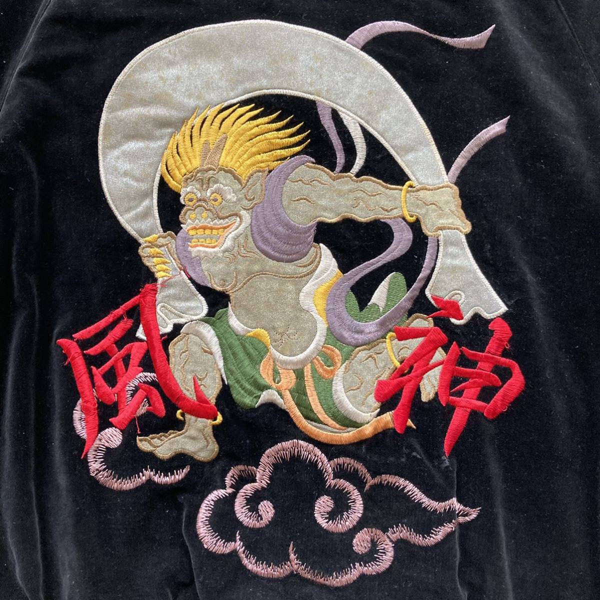 80s 90s 別珍 ベッチン 風神 豪華刺繍 中綿入り スカジャン ジャケット F
